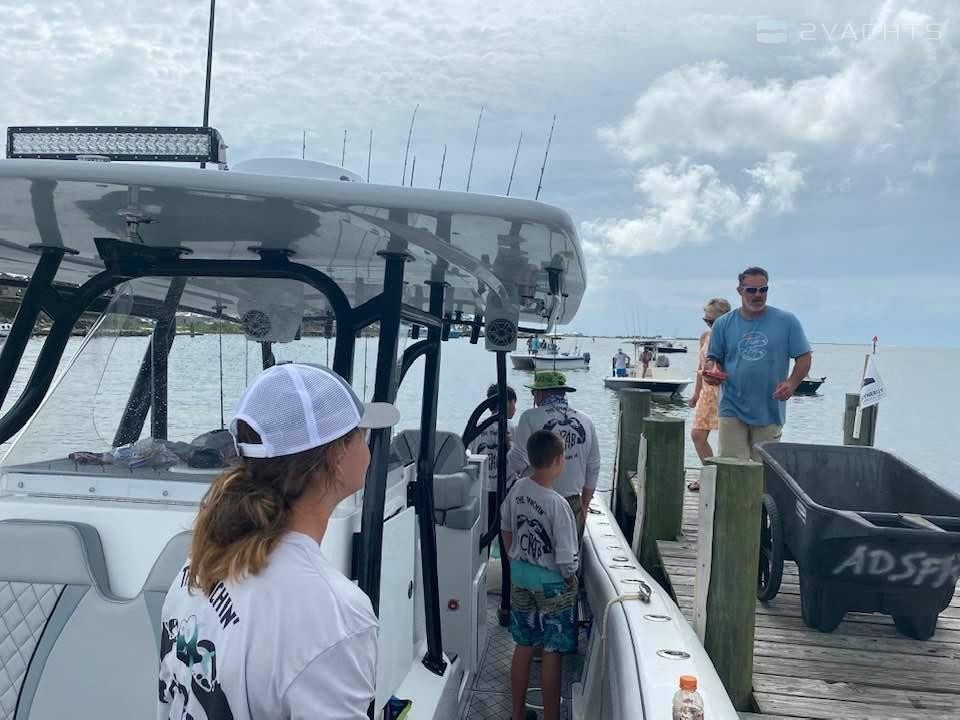 5 YEAR CERAMIC COATINGONE OF THE FIRST PARTIALLY INFUSED 31’s.NO WINDLESS TWIN 300 V8 MOTORS (SOLID BLACK) – still under warrantyFUEL MPG: it’s great! To sum it up: 5 people, both fish boxes full of ice (700 lbs-1000 lbs.), both live wells running, all rod holders full of poles, over 100 lbs. of weights, leaving out on a slick morning, 1.49 mgp at 41.2 mph. We are always loaded along with 4 or more people when we offshore fish. We always go out 65-90 miles to fish (that's one way). Boat will run 60 wide open. The range at 41/42 MPH will be about 450 miles, heavy.300-HOUR SERVICE DONE. Motors have 375 hours on them. ALL MAINTENANCE RECORDS WILL COME WITH IT.306 Gallon Fuel capacity (we put 327 gallons to fill)Custom Hard Top with (2) Spreader lights, (4) Orbits (Red, White, and Blue)(2) Handrails, and Rod HoldersRitchie CompassUnder Gunwale LED LightingLive Well LightsCustom Deluxe Double Helm Seat with 316 Stainless Steel HardwareFULL HULL COLOR: WHISPER GRAY, BLACK RUBRAIL, BLACK POWDER COATED RAILS.COMPLETE GATORSTEP PACKAGE RIGGING STATION WITH FOLD DOWN BENCH SEAT - NO MEZZANINE SEATING.Sea Star Optimus Joystick Powder Coat Package (All Aluminum, Top, and Rails) - Black Powder CoatingAcrylic WindshieldFresh Water Washdown with 16 Gallon TankWalk Through Transom with DoorTwin Fully Plumbed 45 and 35 Gallon Live Well with Lights with Aquarium Windows and LightingSeven 8" Pull Up CleatsTrim Tabs with IndicatorsCoaming Pads (DIAMOND STITCHING)Stainless Steel hose holdersLadder, Armstrong Transom Removable LadderDeluxe China Porcelain Electric Head with 6 Gallon Holding Tank and Pump Out with waste management system.Under Water LED Lights (Blue and White) -Two LED LightsLithium Battery Up Grade. (4) BatteriesBattery Chargers. (3) Bank House battery ChargerCustom Diamond Upholstery - GRAY & BLACKGem Deluxe Outriggers with 22' Carbon Fiber poles (poles still in box, never used)Rod Holders on Side of Gunwale – too many to countTransom rod holders – 4 on each side (also black powder coated)Heavy duty swivel rod holdersElectric reel outlets (6 total; 3 on each side)Rhodan HP GPS Trolling motor Package, (3) Lithium Batteries, Lithium Battery Charger, Custom Battery Tray (trolling motor is mounted on the back platform, 48”)Nite Track (Simrad 24" Hallow Radar (dome)Simrad EVO3S 16" ScreensSimrad Side Scan 3DAirmar PM275 High/Wide/Deep TransducerMild package: JL Audio Sound System (M 100 Head Unit, (4) M6.65J Speakers, M400-4 4-Channel Amp M800/8 V2 Amp, (4) 8.8 JL M6 8.8 SpeakersCustom Designed Tandem Float on Bunk TrailerElectric Over Hydraulic BrakesStainless Steel Dmax Brakes (each axle)Side Console Door Drink Holder Rod Holders - Between Rod HoldersAdditional Bilge pumps – 220" Light BarFire Extinguisher box (2)Hose Holders for Fresh and Saltwater Wash Down2 custom gaffs with gaff holders