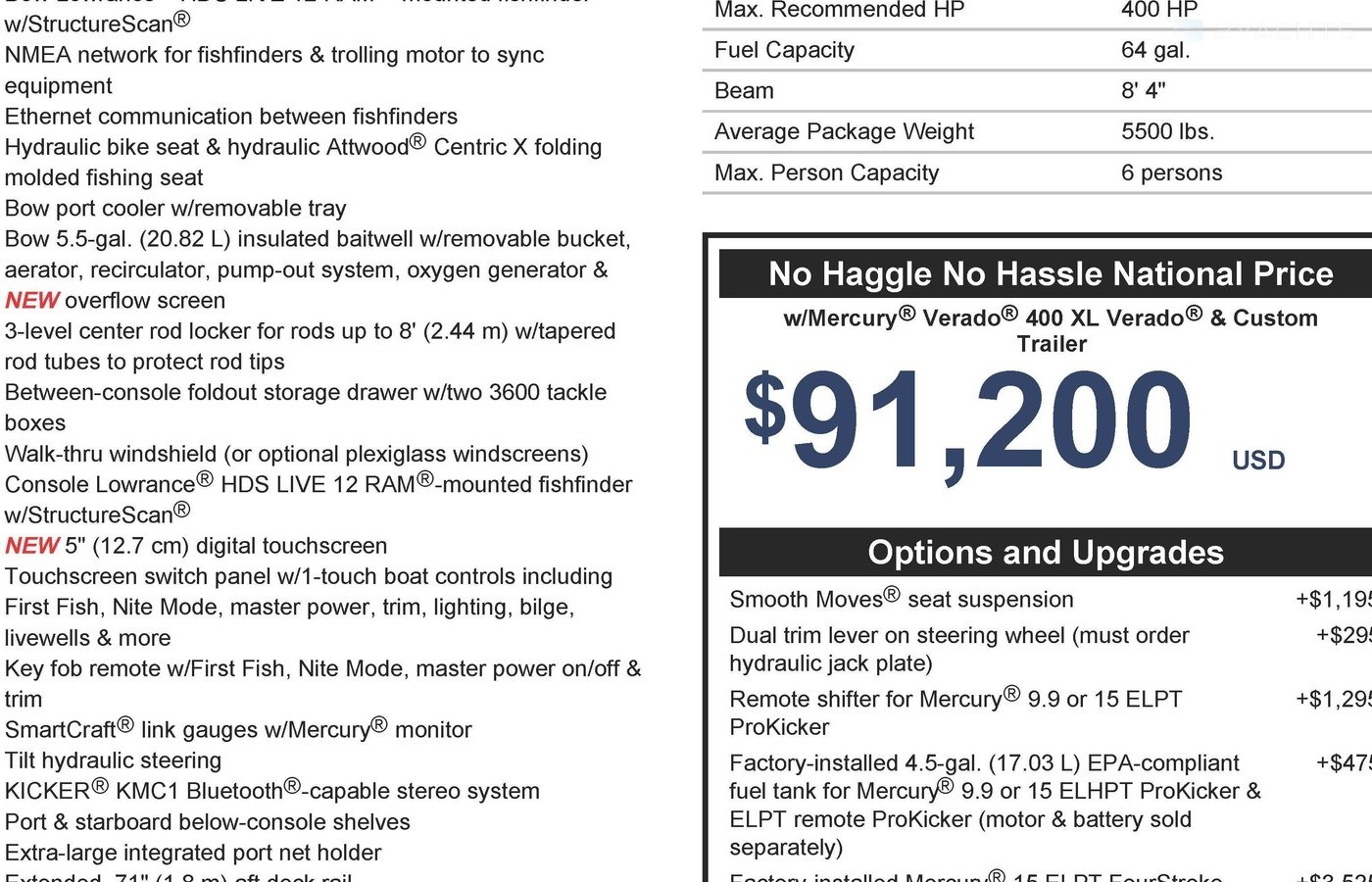 Stock# N1603.......2023 Nitro ZV21 Pro Package powered by a 400HP Mercury Pro-XS 4 Stroke and a 15HP Pro Kicker!! Price includes boat cover and dealer freight & prep.......call us today 1-877-827-2840 before it gets away, financing available with approved credit and trades are always welcome at Pro's Choice Marine! See dealer for details on the Loyalty Retail Savings Promotion!