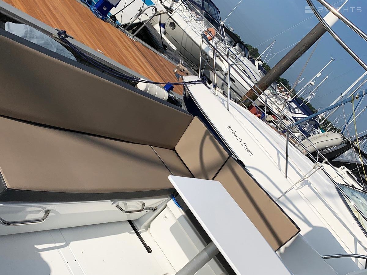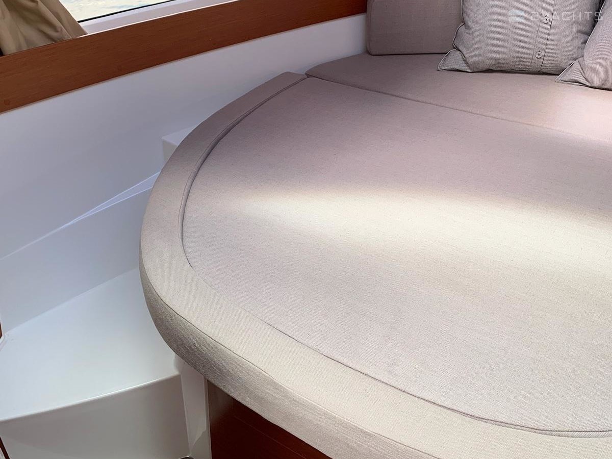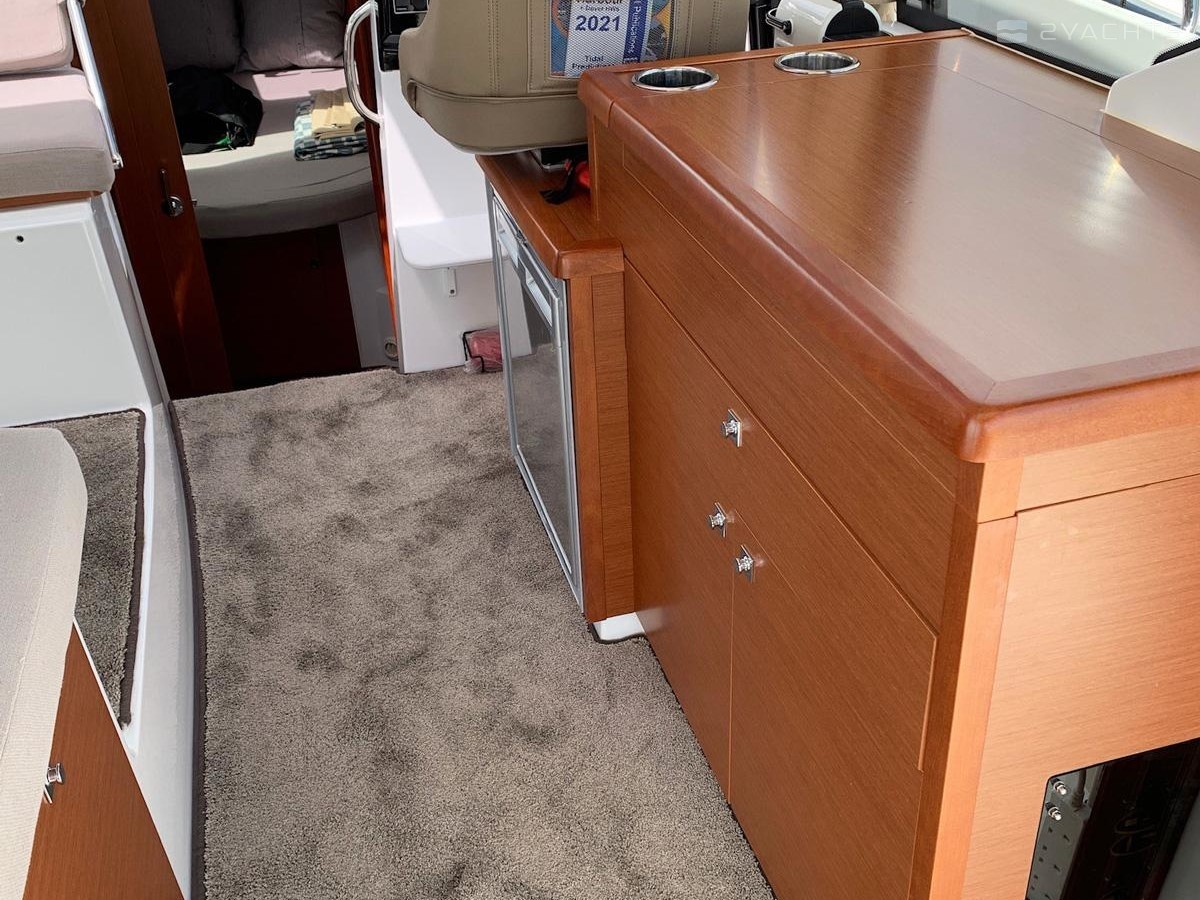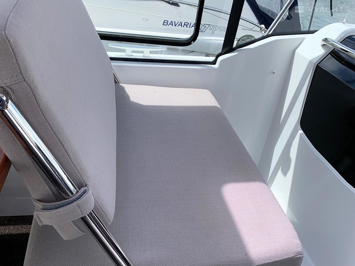 * Single Yamaha F300BETU electronic drive-by-wire engine with approximately 80 hours recorded.* Premiere pack - Electric anchor windlass, aft cockpit bench cushions, 60 litre fridge, cockpit shower, electric trim tabs, LED lights in the wheelhouse and front cabin, LED lights in the cockpit floor, toilet seat and bed surround in the front cabin.* Mooring and anchoring kits.* Comfort pack - Bow thruster, shore power, battery charger and water heater.* U-shaped cockpit saloon.* Twin burner gas hob.* Curtains for the wheelhouse.* Interior carpets.* Microwave.* Electric flush toilet.* Webasto diesel fired warm air heating system.* Rear sun canopy and enclosure.* Simrad GPS chartplotter with sonar transducer.* VHF radio.* Fusion audio system.* Bathing platforms with teak.* Trim tabs