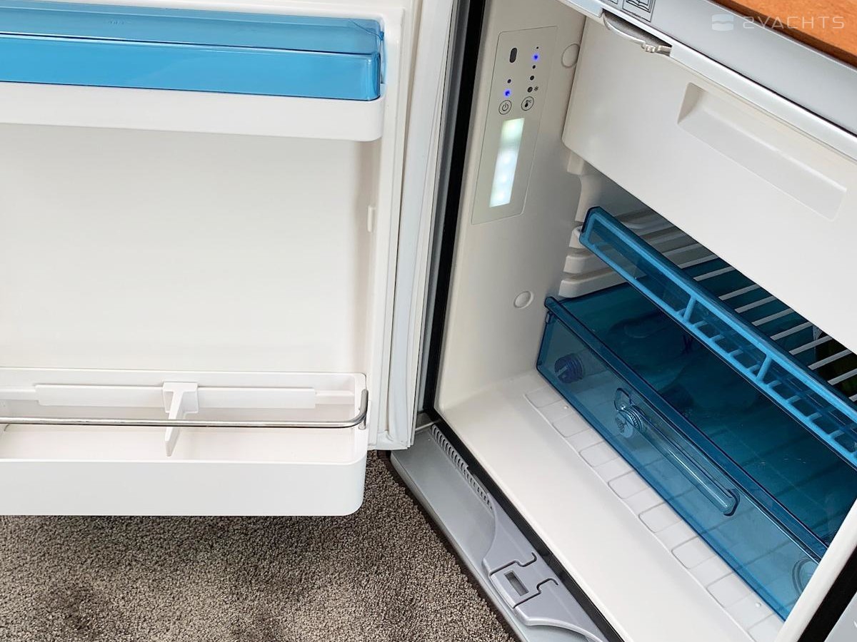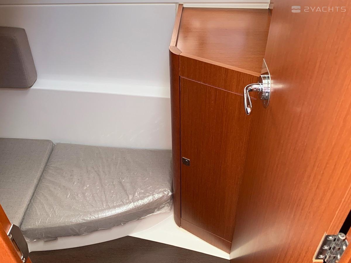 The main cabin has wide windows and is equipped with a head with shower and marine WC. The Merry Fisher 895 also features a second cabin.