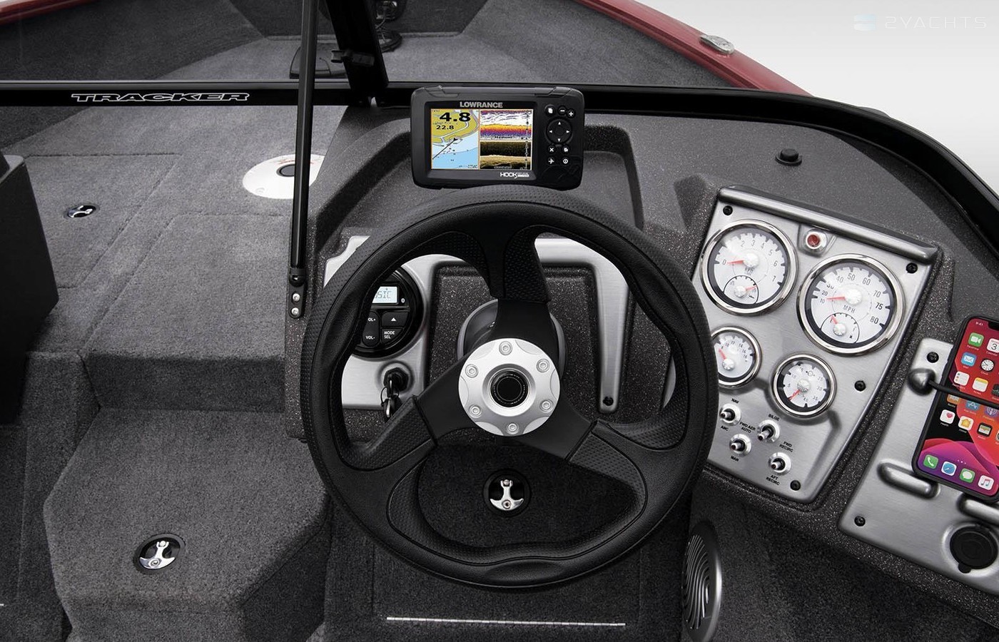Color: DIAMOND COAT™ Starlite Blue, Starlite Red or TRACKER® Black gunnels & hull sides w/Starlite Gray bottom