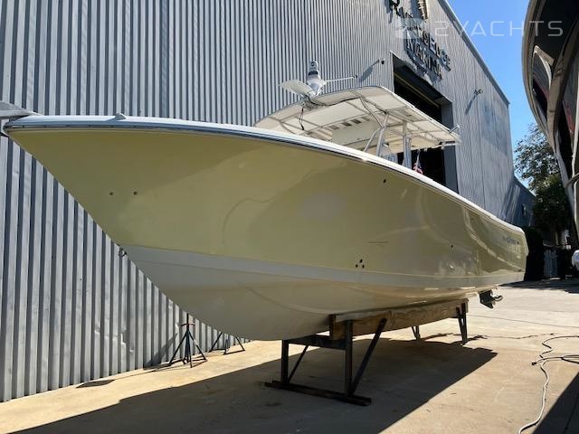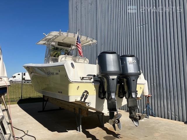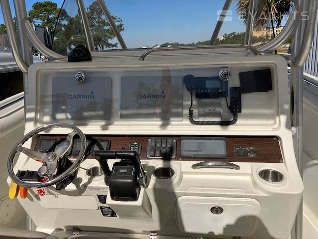 2006 Sailfish 3006. The 3006 is one of the larger center consoles. This model is very wide and stable. High gunwales make for a dry ride in heavy chop. This boat used to have a second station which was removed in June 2021. The reinforcement is still on the console so it is probably the sturdiest console you will find. Boat has always been dry-stored – engines flushed and hull washed every time it came out of the water. Runs great, has more than enough range and comfort for long, offshore runs, but is nimble and shallow enough for a day at the sandbar.