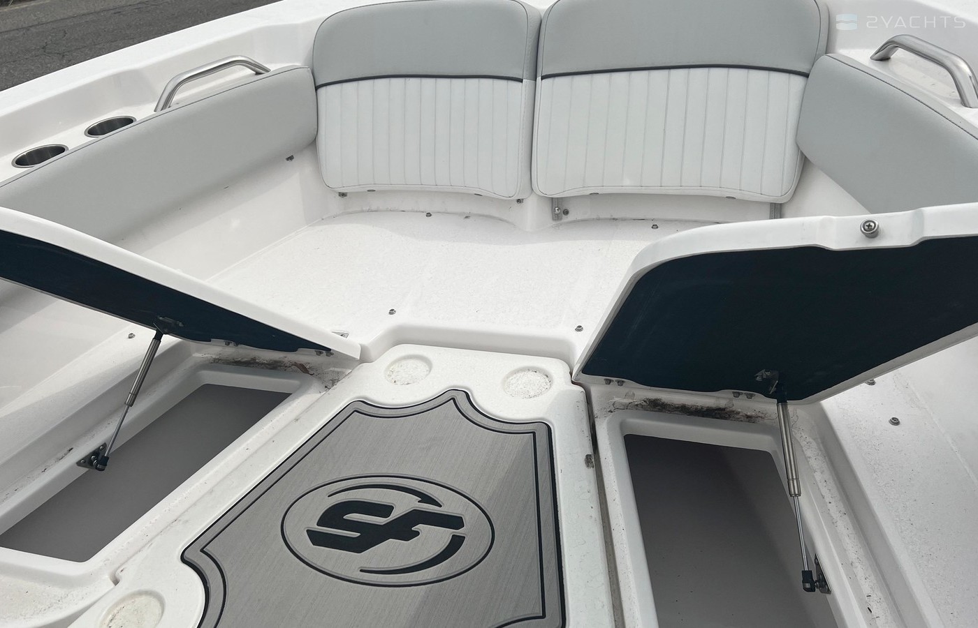 PRO PACKAGE - Cushioned foot mat, gas shocks on two bow lids, two extra rod holders on bow gunwales and four quick release tender deck mounts