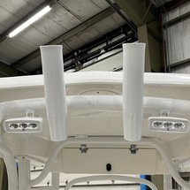 It had to happen. Parlaying the game-changing success of the R180 and the R200, Robalo takes its center console offerings up a notch for 2023 with the introduction of the R222. The R222 is sold at a nationally advertised price. The keyword here is more. More centerline length. More storage space. More ride comfort. More seaworthiness. More fishing features. The only place where the new R222 proudly comes up short is its Reel Deal price tag. Key fishing features include twin 30-gallon fish boxes that can either keep your catch fresh or serve as storage areas. A 15-gallon livewell with LED lighting and a blue gelcoat finish is conveniently positioned under the standard leaning post.