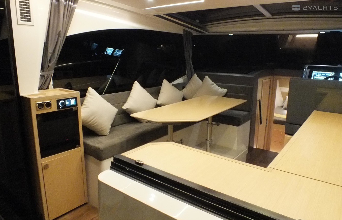 Twin Mercury 300hp V8 Outboard Engines | Shore power | Teak Flooring | Bow Thruster | Bow Sunpad | ZipWake Trim Tabs | Hot Water | Electric Opening Roof (Glass front) | Anchor Windlass | Diesel Heating | Hot Water | Horn | Electric Sliding Roof ( Canvas Back) |Aft Lights Under Platform | Electric Toilet | Hull Wrap | Cockpit Enclosure