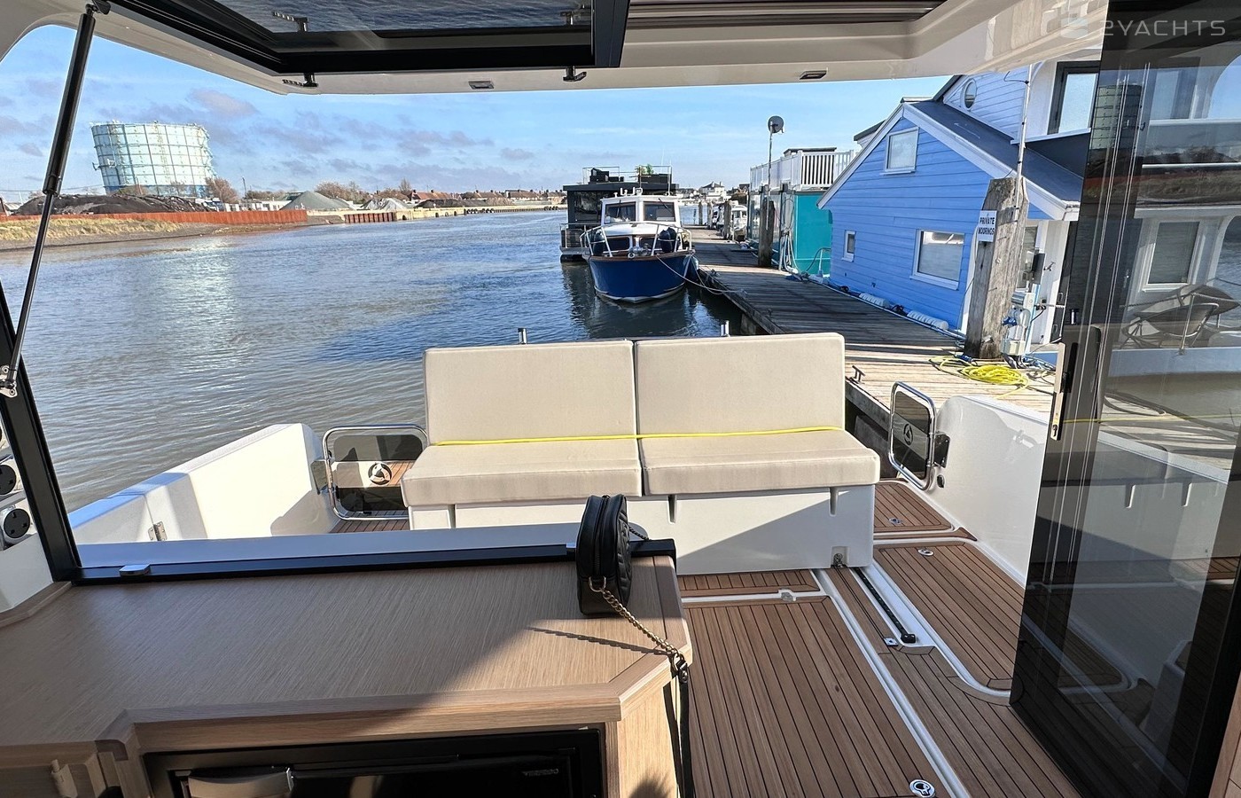 A wide range of outboard engines is available, typically a pair of 150HP or 300Hp for sparkling speeds and a comprehensive list of additional equipment. Overall a very sleek modern design, practical and functional for a price that will surprise and delight you.