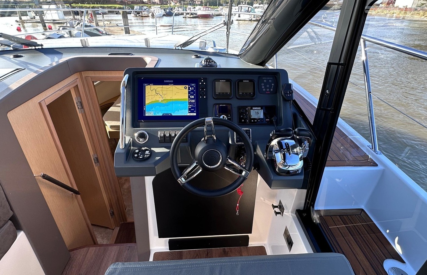 Other notable features are the helm door, usually seen on bigger boats and the rare topside door for easy boarding onto the boat from a marina berth.