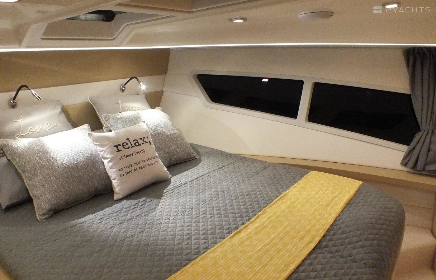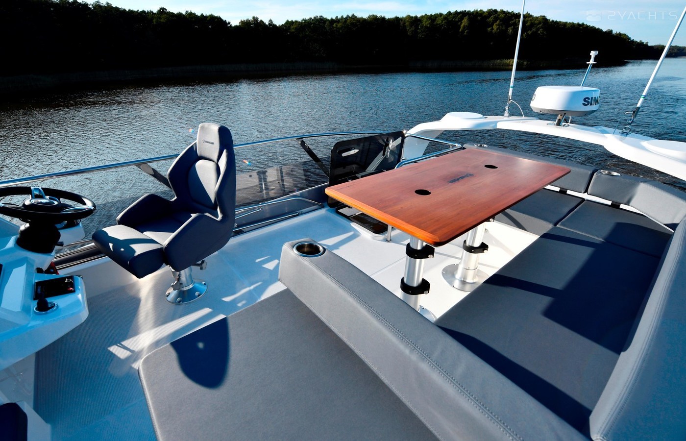 Twin Mercury 300XL V8 | LUX FLYBRIDGE ELECTRONICS PACK - Simrad multi-function display NSS16 EVO3S, Radar Simrad Halo20+, Autopilot Simrad AP44 VRF, Radio VHF RS100-B Simrad, Radio Fusion MS-RA770 Apollo z WiFi, Wired Remote Fusion MS-NRX300, Speakers Fusion 6.5" 230W Classic White Marine 5x, Subwoofer Fusion 10", 6 Channel Amplifier Fusion, 5 Channel Amplifier Fusion FLYBRIDGE - Simrad multi-function display NSS12 EVO3S, Autopilot controller Simrad AP44, Simrad VHF RadioRS100, Camera Simrad + infrared, Radio Fusion MS-SRX400 Apollo - WiFi, Speakers Fusion 6.5" 230W Classic White Marine, 4 Channel Amplifier Fusion, Subwoofer Fusion 10" | Teak Cockpit & Foredeck | Zipwake Trimtabs | Bow Thruster | Front Sundeck Upholstery | Cockpit Fridge | Hot Water Installation | Anchor Winch | Searchlight | Shore Power | Additional Fuel Tank 300L | Additional Water Tank 165L | TV Slot | Heating | Fridge (Flybridge) | Second steering position (flybridge) | Flybridge Bimini