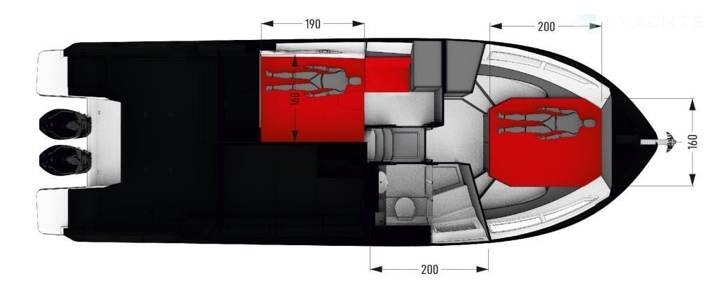 Designed and fitted with twin 300 outboard engines, this boat has favourable service and maintenance costs unlike that of the stern drive boats.