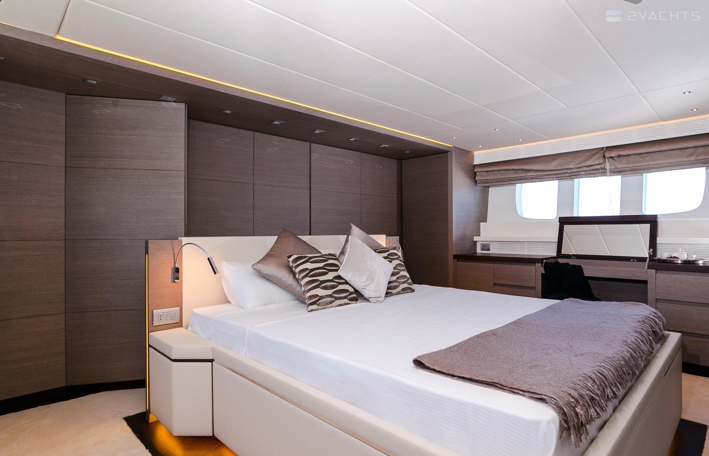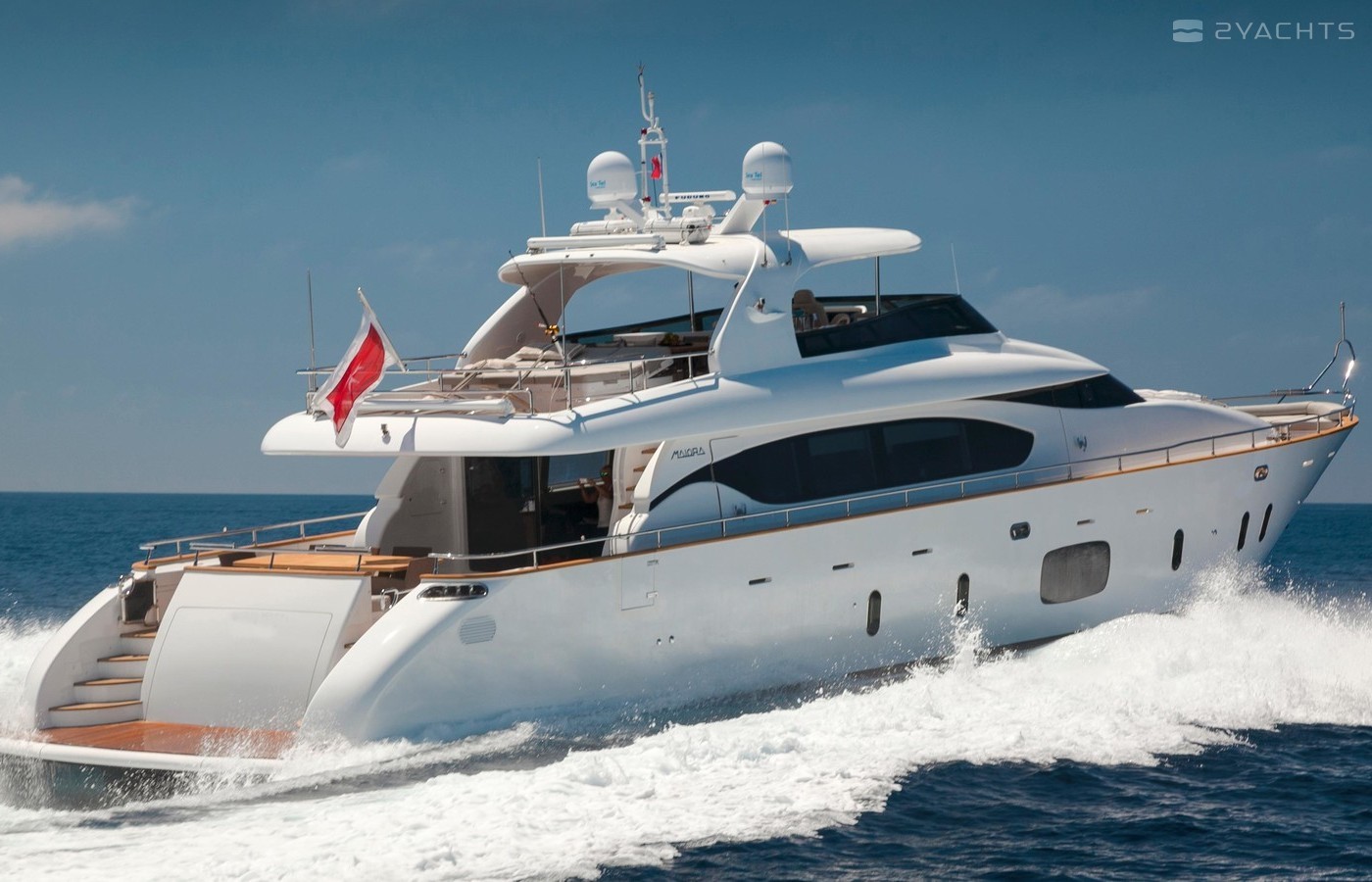 She is powered by twin MTU engines with a top speed of 23 knots, and also features zero-speed stabilisers.