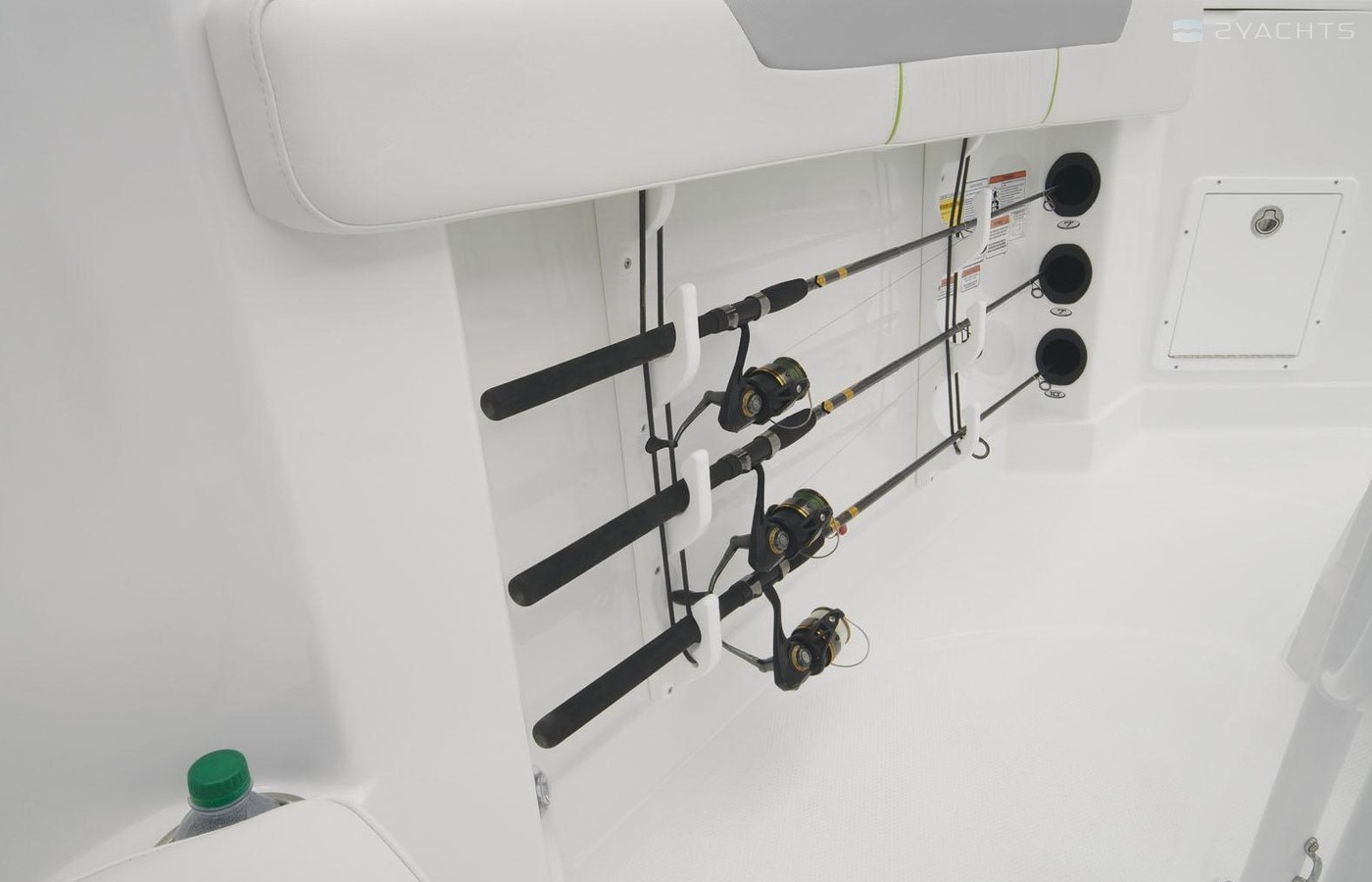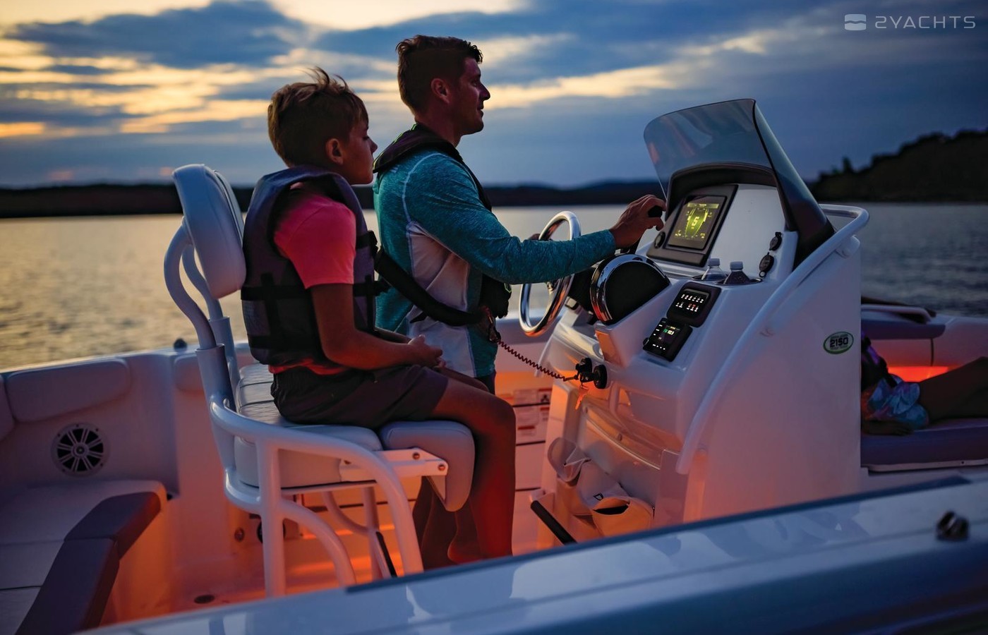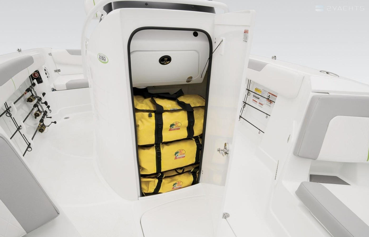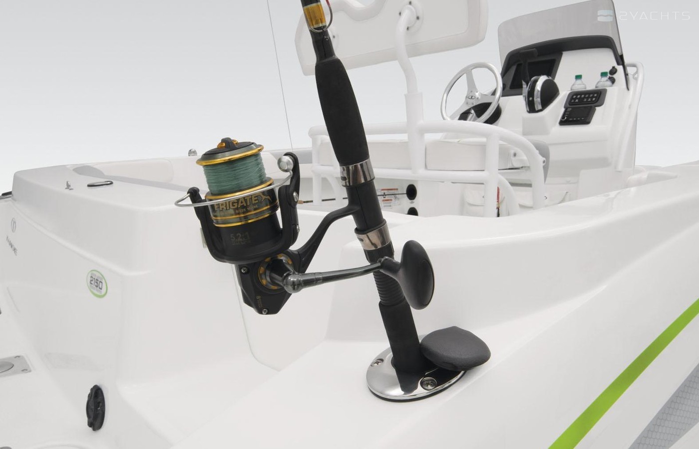 Under-gunnel rod holders carry up to six combos (six 7’ rods or four 7’ + two 10’ rods) at the ready when the bite gets hot. A livewell keeps your catch perky, tackle box storage keeps baits neat, and a pop-out tool holder safely stow pliers and tools. The available Fishing Package unleashes the full fishing prowess of the 2150 CC. When it’s watersports time, bust out the available ski pylon and dig out the skis from the center storage. Relaxation can be found anywhere in the 2150 CC, with a spacious bow swim platform and bench and lounge seating inside. Get in the 2150 CC and expand you on-water pursuits.