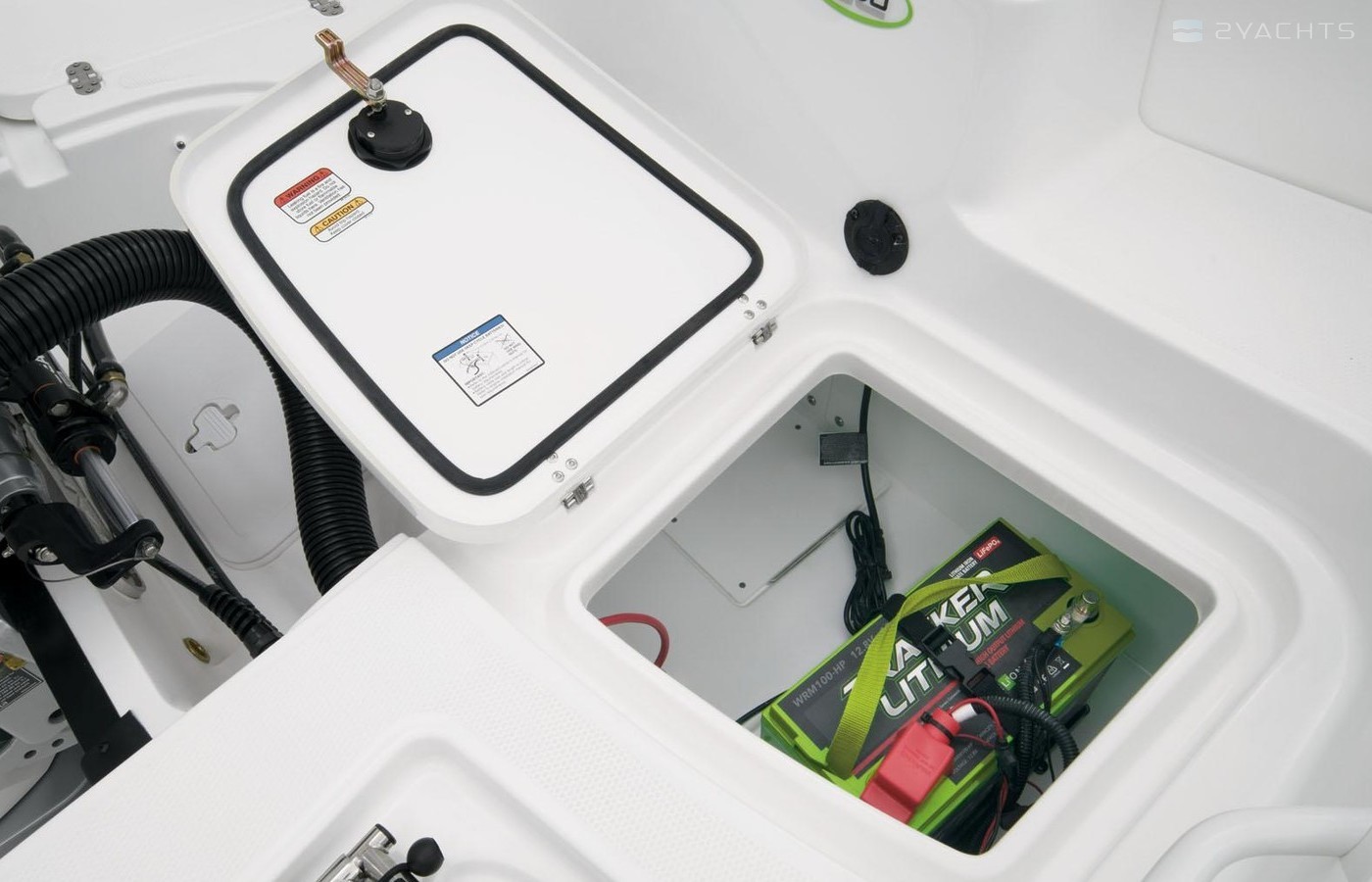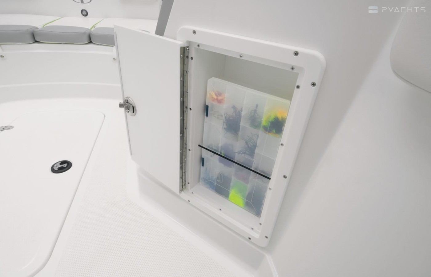 Aft lounge w/two 56-qt. (53.0 L) storage compartments (starboard being dry storage) & 36-qt. (34.07 L) cooler