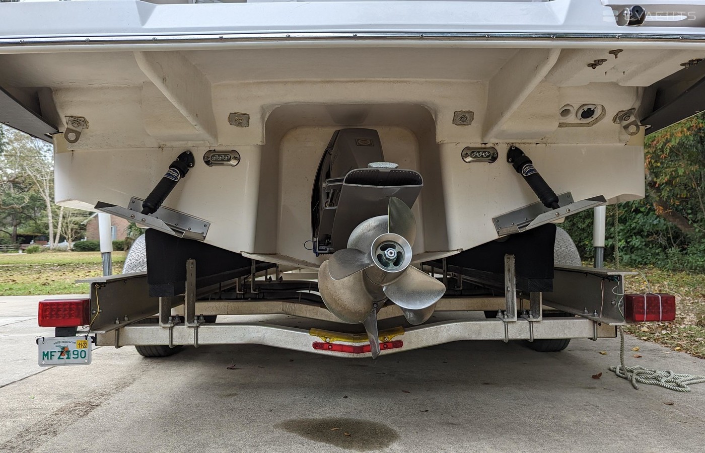 The pictured trailer is included in this deal. Some might say that a triple axle trailer is necessary for a 7700+ lb boat (before gas/oil/equipment etc...) but not when you have 8-inch aluminum beams on your trailer and two 6500 lb axles. This Sea-Tec trailer was built specifically for this boat and its strength is apparent. It has an installed spare tire as well.