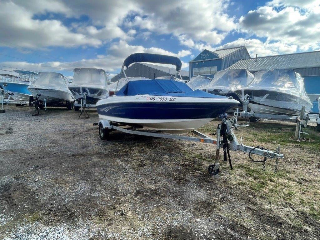 2008 Bayliner 175 BR, 3.0L 135M Mrrcruiser, Karavan Galvanized Trailer, Arctic White with Blue, Bimini Top, Bow Cover and Cockpit Cover, Digital Depthfinder, Stereo Speakers, Extended Full Swim Platform