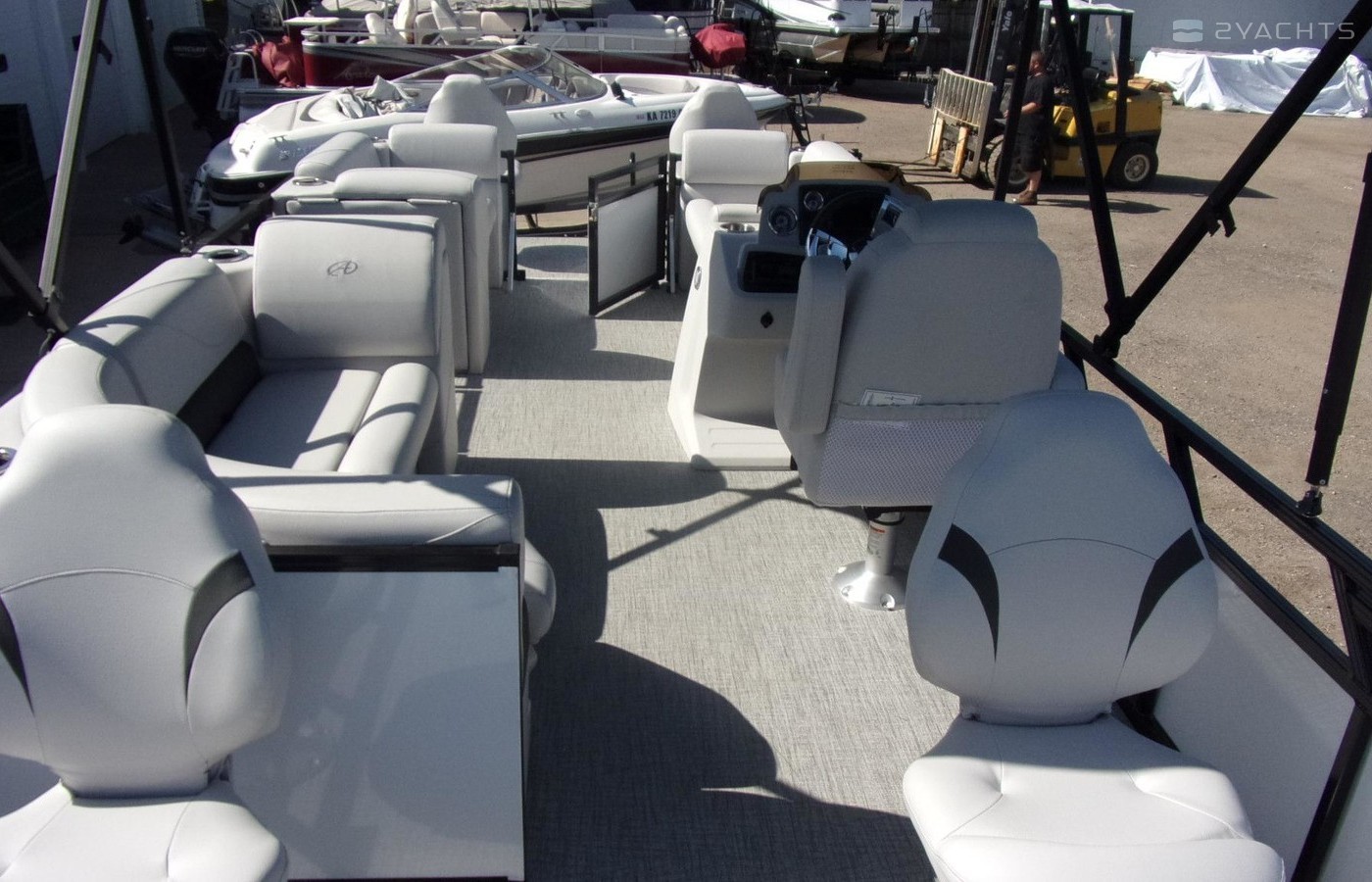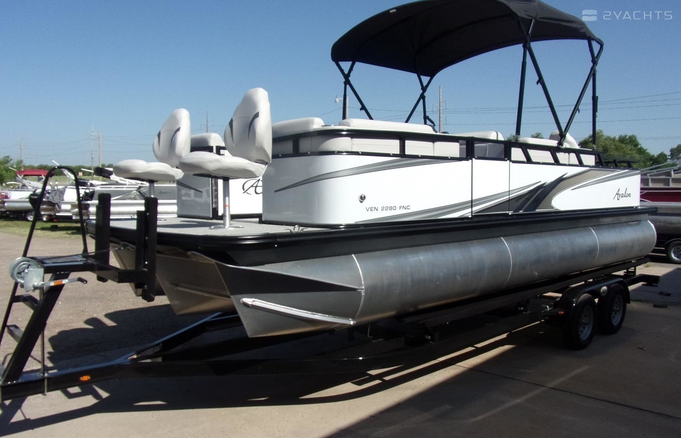 2023 Avalon 2280 Venture Fish N Cruise Sport Toon, 2023 Avalon 2280 Venture Fish N Cruise Sport Toon equipped with Mercury 150 hp 4 stroke outboard motor. Features include:Bimini topCoverTableRear ladderLivewellSport performance packageBlack out package4 fishing chairs1 low back reclining chai Bronze sound package with 4 speakersGarmin Striker 5CVDual battery selectorCourtesy lightsTilt steeringFull deck Riptide Shadow flooringLighted cupholdersFloor matting under seatsSilver claddingBlue Ice lighting package with mood lightsNavigation lightsRemovable windshieldGates w/lift-n-lay hingesRear fishing center with rod holdersTandem axle trailer. 12 person capacity. Please call before coming to view as our inventory changes location frequently. Visit us at www.midkansasmarine.com