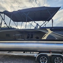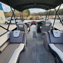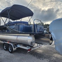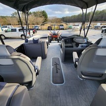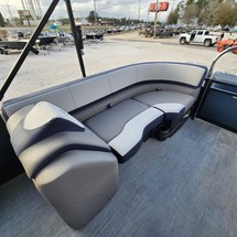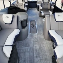 The midrange LSZ Quad Lounger pontoon boat includes full-length benches in both the bow and aft portions of the boat, providing comfortable seating and a large, open floorplan. Unique accents give this boat the high-end look at an affordable price. The Quad Lounger also includes a port side chair beside the captain. The LSZ Quad Lounger is an all-around great pontoon.