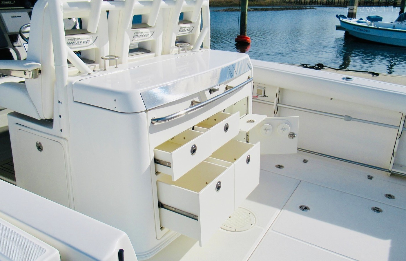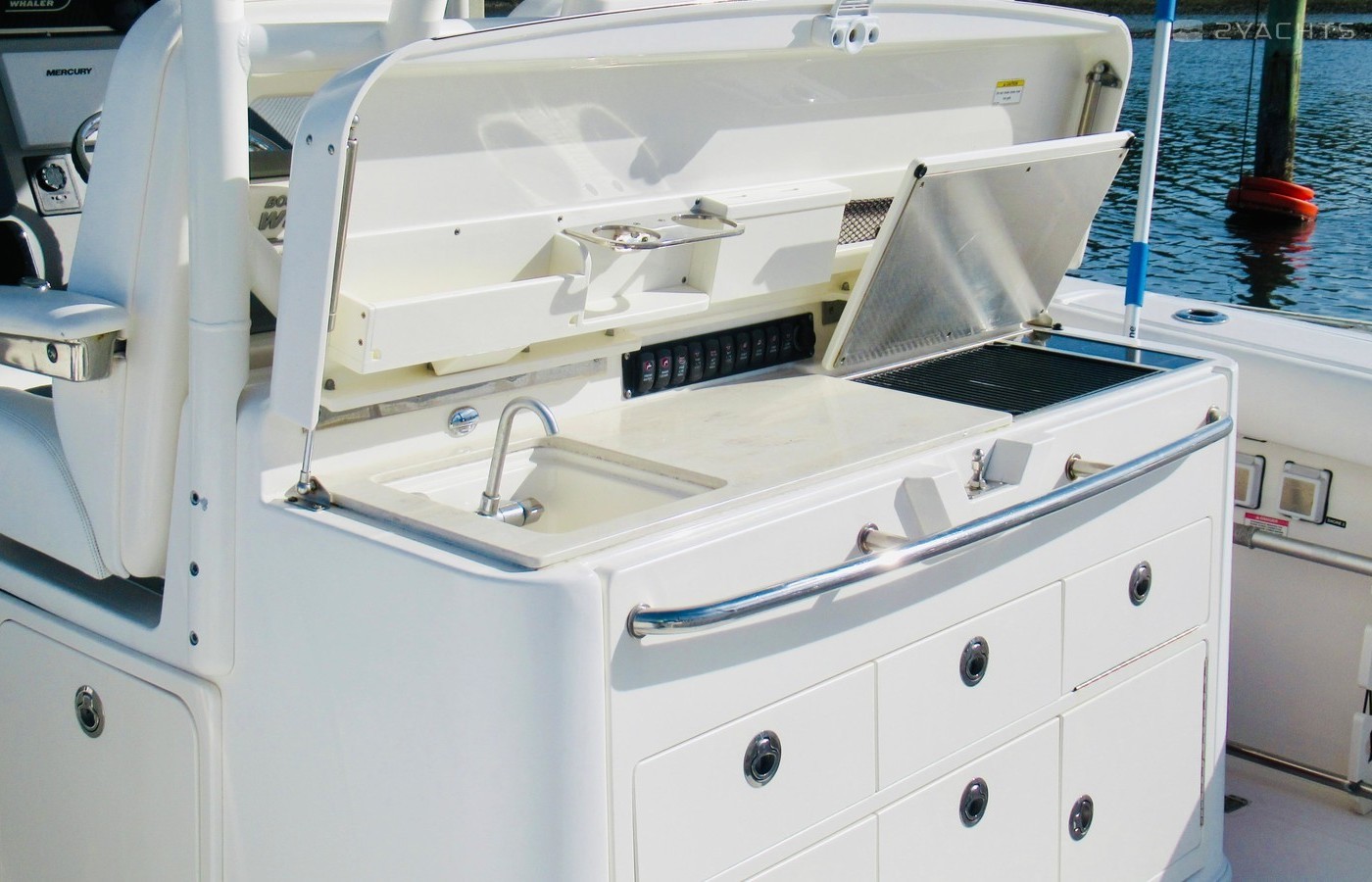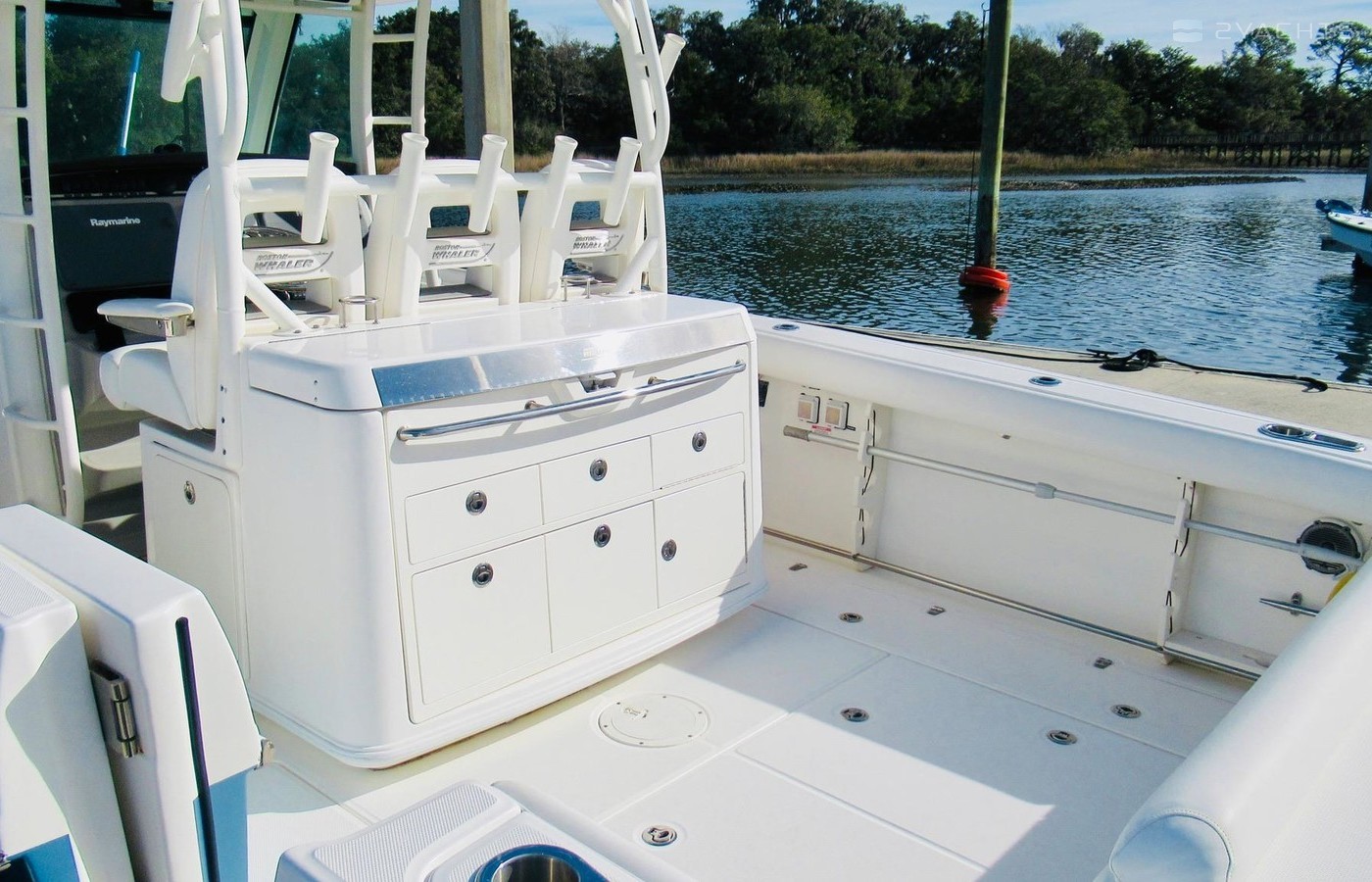 Remarkable capability beautifully matches thoughtful amenities and cutting-edge technology in the 350 Outrage. Whaler’s boat-building quality and attention to design is clearly evident from bow to stern, with features and options to make your 350 Outrage uniquely yours. On the 350 Outrage, every element combines to produce an exceptional experience no matter what the day brings. On a Whaler, you are safe, secure and always ready for more with confidence that never wavers.