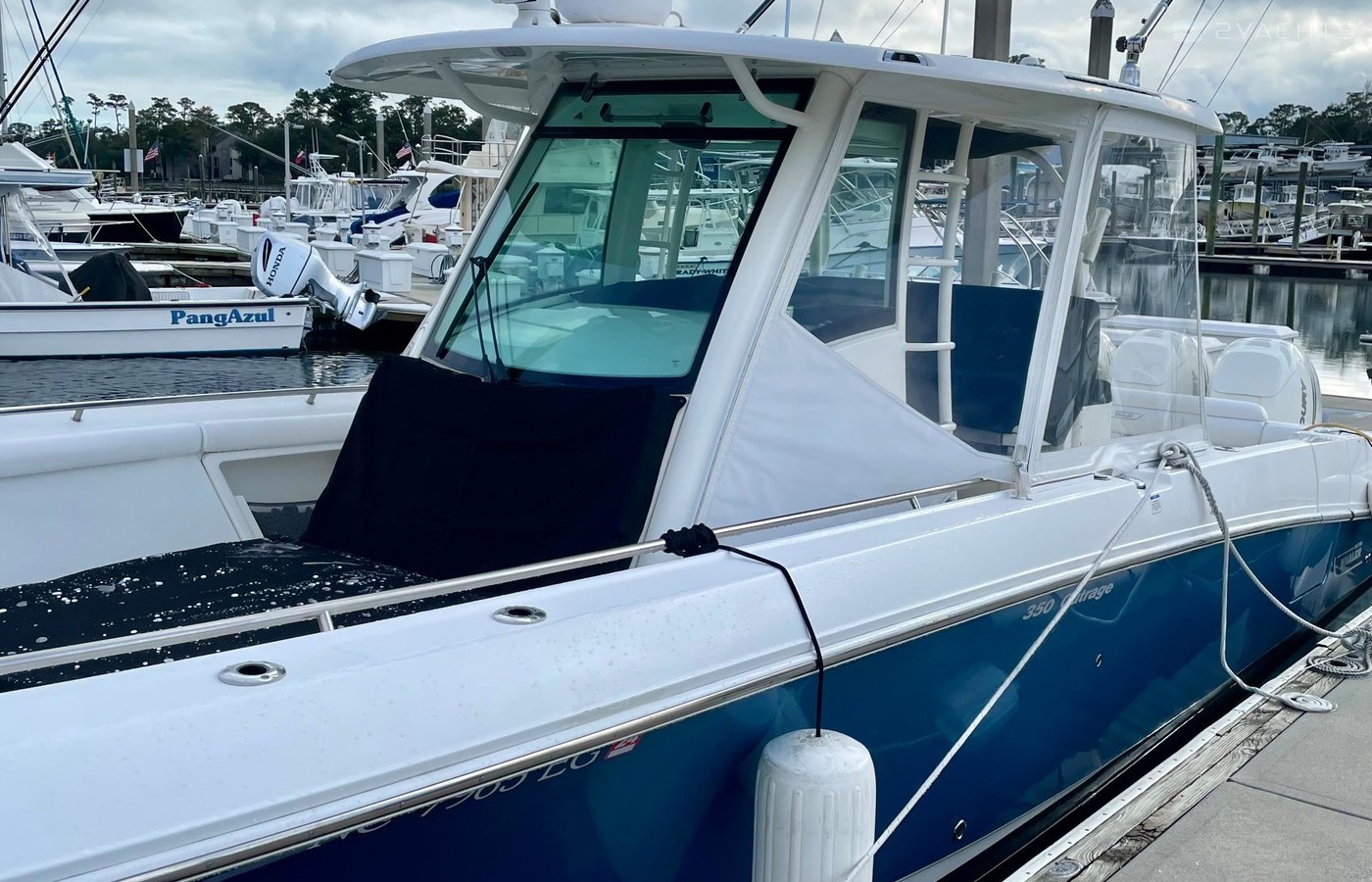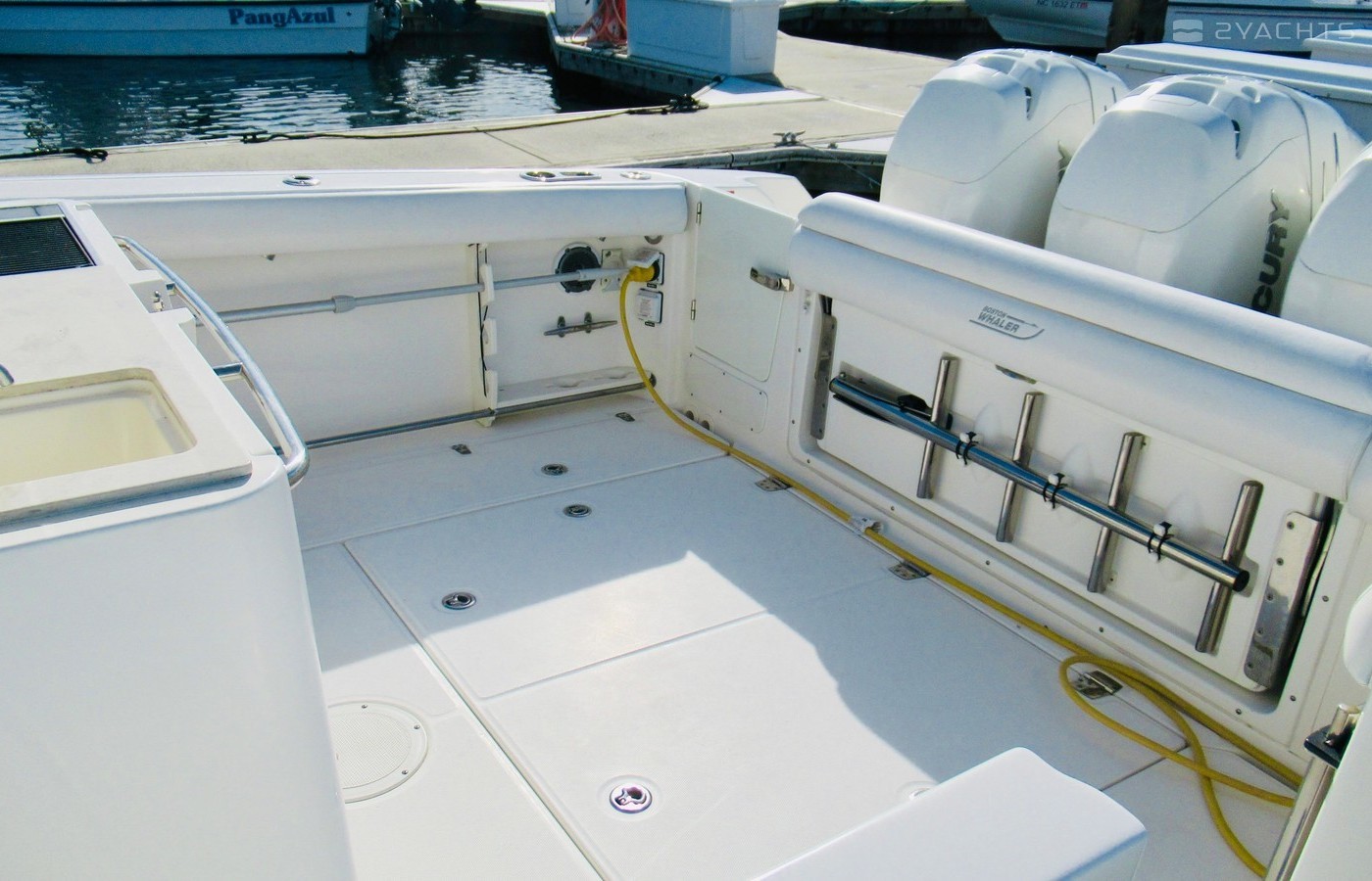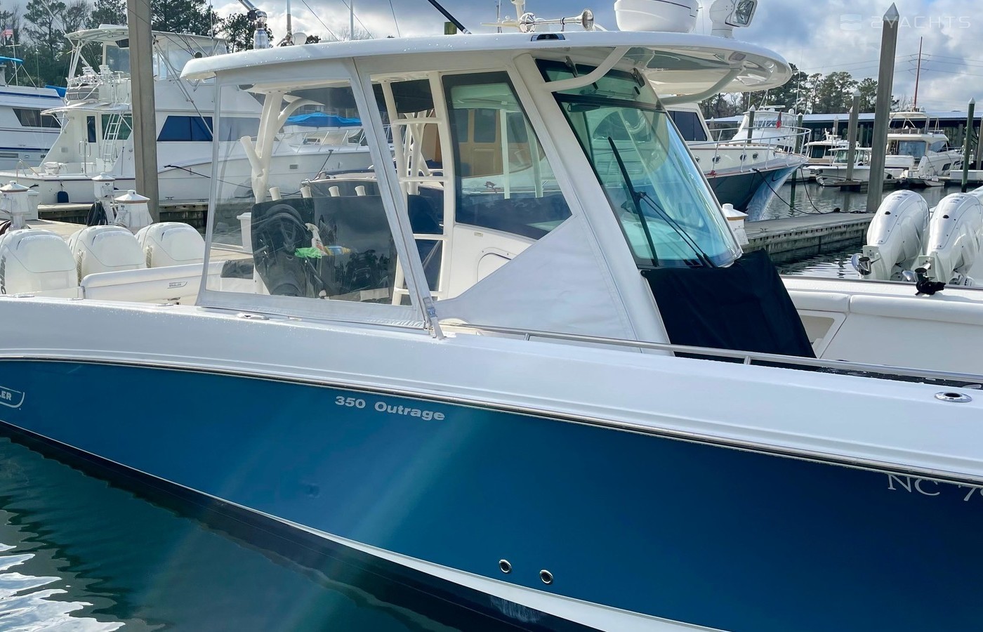Remarkable capability beautifully matches thoughtful amenities and cutting-edge technology in the 350 Outrage. Whaler’s boat-building quality and attention to design is clearly evident from bow to stern, with features and options to make your 350 Outrage uniquely yours. On the 350 Outrage, every element combines to produce an exceptional experience no matter what the day brings. On a Whaler, you are safe, secure and always ready for more with confidence that never wavers.