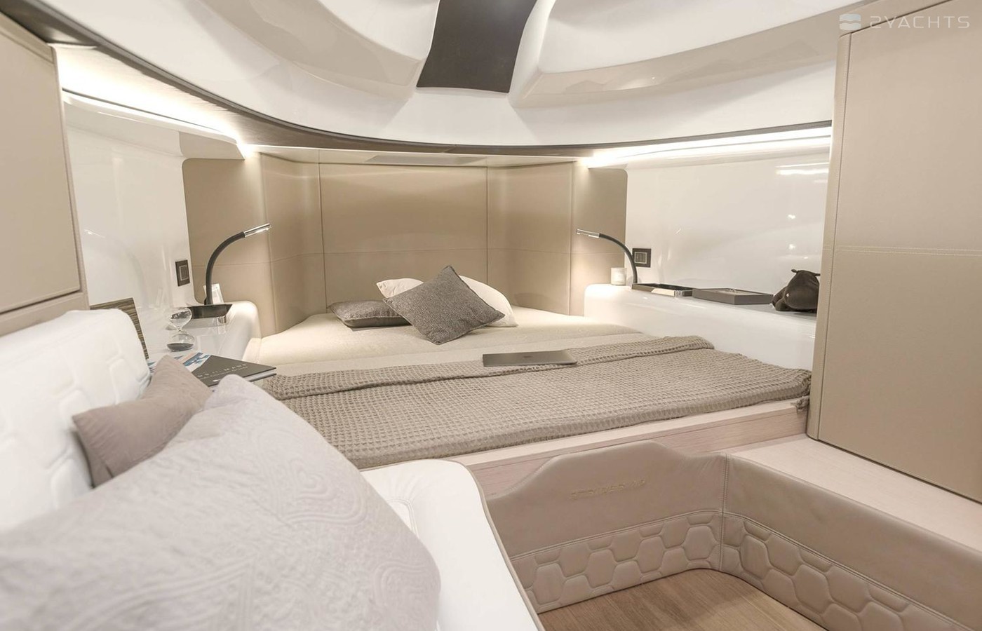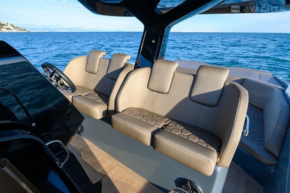 A strong character that takes shapes with style, energy, and power.All the sinuous lines of the boat converge on the big “beach area” at stern and at bow to create two precious and functional spaces.