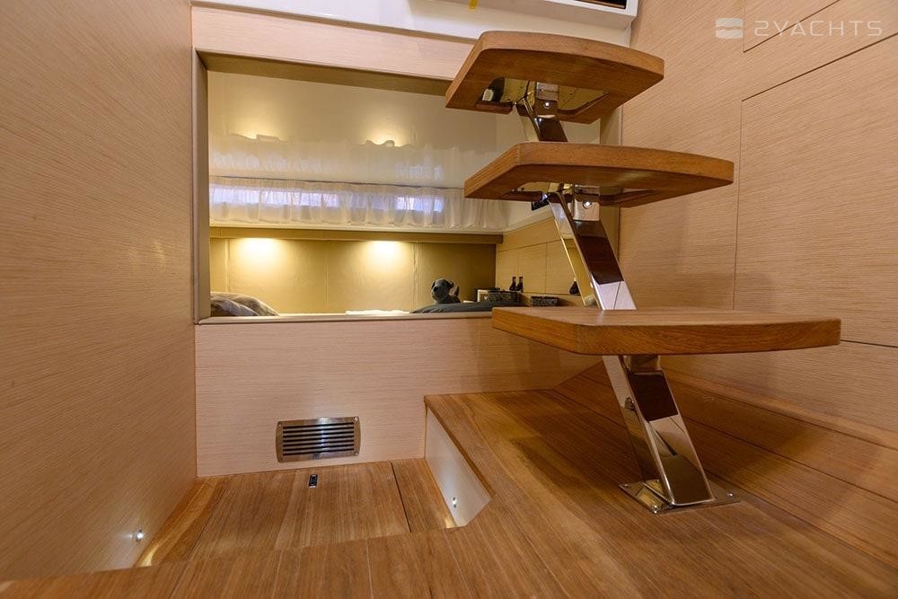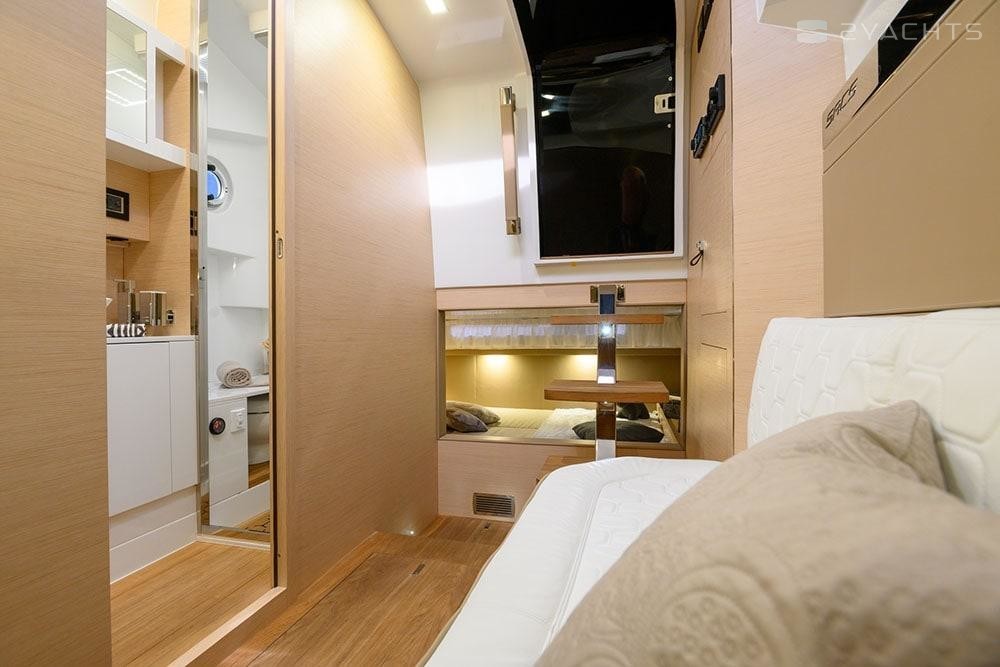 A strong character that takes shapes with style, energy, and power. All the sinuous lines of the boat converge on the big “beach area” at stern and at bow to create two precious and functional spaces.