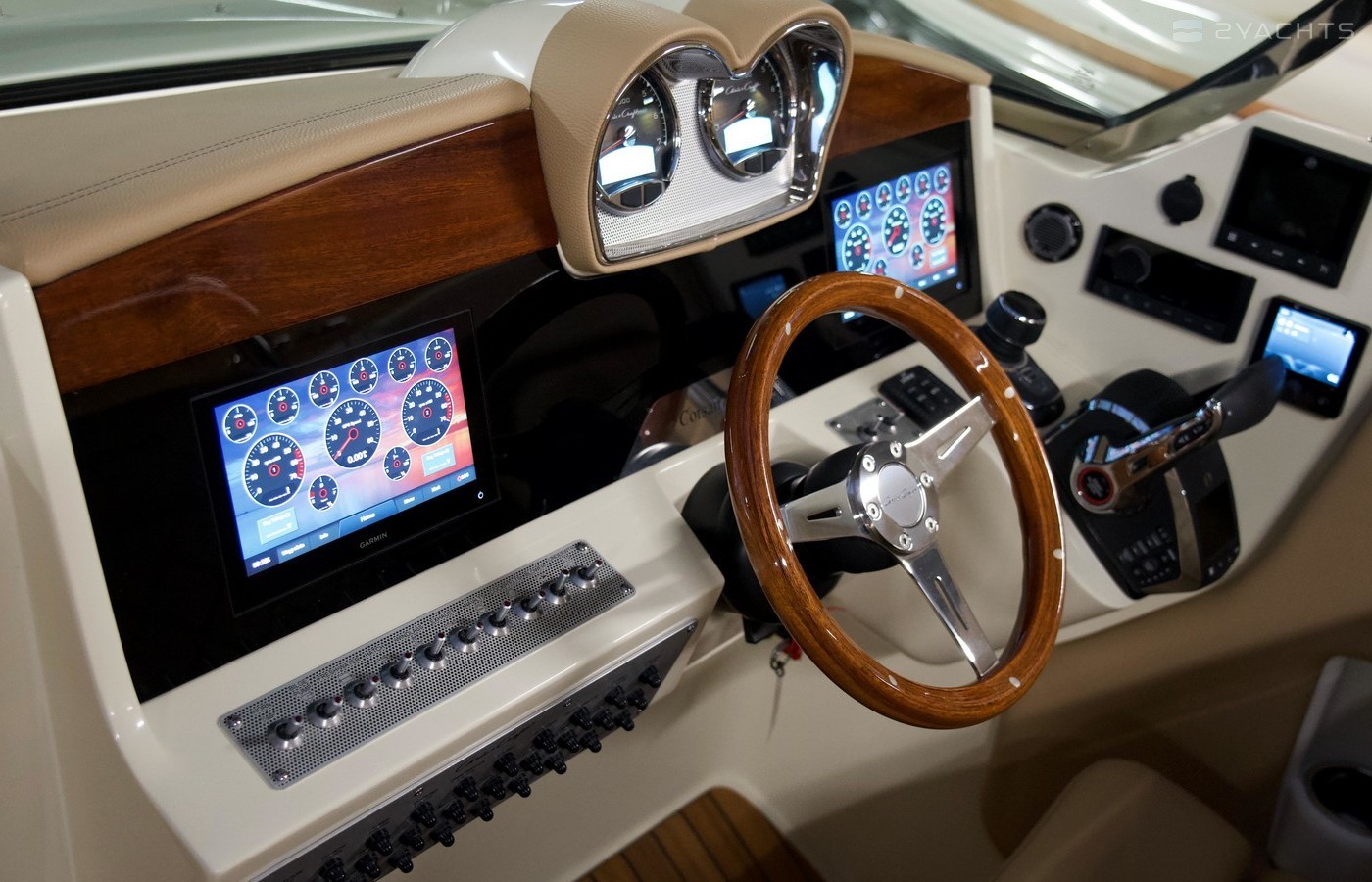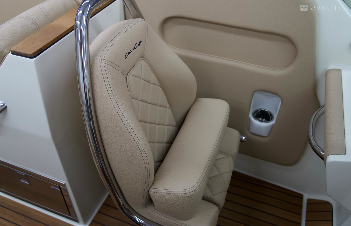 Full teak package, Bimini is stored under electric engine hatch, 2 refrigerators, Joystick, Skyhook, Seacore Bravo 3X, Generator 220volts, Airconditioned cabin, Galley convinience package, microwave and cooktop, Lumishore underwater lights system, docking lights, 2x Garmin multifunctions system, Separate toilet, upgraded Fusion sound system with extra amplifier and subwoofer, Stainless steel anker with complete chain and windlass, fenderclips, mooring cover navy blue, cockpit cover navy blue.
