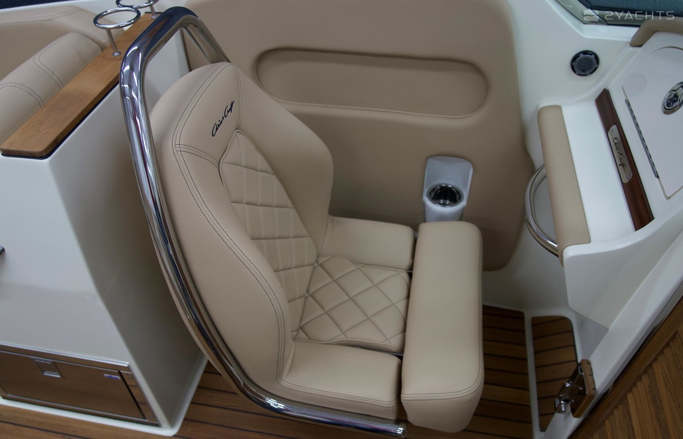 The spectacular private cabin is bright and open, thanks to three expansive overhead sunlights. Impeccably finished in hand-selected woods and custom upholstery, it includes a galley, sleeping area and separate bathroom.