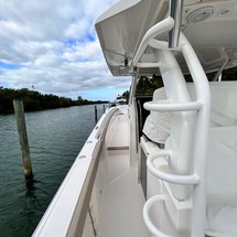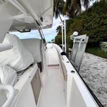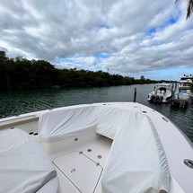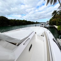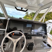 The 2020 Pursuit S408 simply checks all the boxes. Pursuit did a huge favor to the big center console market! A few of her features include a large beam, and reliable Yamaha engines. Along with a nicely appointed cabin, comfortable air conditioned helm, seating galore, Garmin electronics package, bow thruster and more. It pleases the cruiser, the angler and the family! The 2020 S408 is a very comfortable vessel as its 13' beam offers tons of room forward, a large cabin in console, and aft area. The cabin has great headroom, sleeps two comfortably, has a galley and enclosed head. The cockpit has the popular dive door, refrigeration, BBQ grill, live bait well, forward adjustable seating, sun lounge seating forward and mezzanine seating aft. New to the market, do yourself a favor and don't miss out on an opportunity to see this beautiful 2020 Pursuit S408!