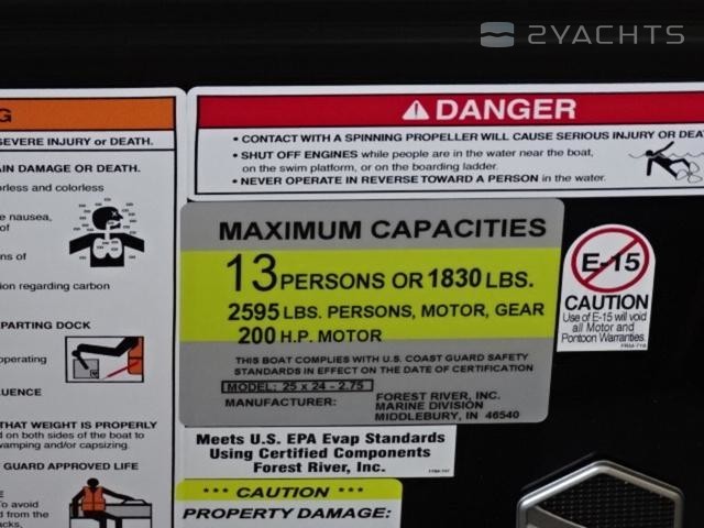 2023 South Bay S224RS 2.75, Z42 Composite Deck...No Wood! Great Color Combo! Suzuki 200! Crazy good price reduction on our most popular toon package! Only $69,990 WITH aluminum trailer!! 2023 South Bay S224RS Suzuki DF200ATX4 Magic Tilt Tandem Axle Aluminum Trailer (bow steps) Options: 2.75 performance pkg (triple toon) Z42 composite deck - NO WOOD!! Black and platinum exterior panels Latte interior with black accent Blackout rail pkg Saltwater Edition with 25" transom 10' Bimini top with coal (black) canvas Lowrance Hook-5 color GPS (2) portable cupholders LED docking lights 7 Year Stem-to-Stern Warranty! Limited Lifetime Deck/Chassis Warranty! Notes from the Factory: 2023 South Bay S224RS 2.75Looking for a pontoon to cruise, fish or entertain your friends, and family on? South Bay's 200 Series offers a wide range of these floorplans. This already feature-rich pontoon has an endless amount of options so you can personalize it to suit your needs.Features may include: (4) Speakers w/ Protective Inside Covers27 Gallon, Direct Fill, Fuel Tank in Motor Pod w/ Fuel / Water Separator3/4" One Piece V-Lite Performance DeckBimini Top Trailering BracketsBow Reinforcement Bumper & Continuous Extruded Aluminum Riser BracketsDeutsch Waterproof Electrical Wiring HarnessExtended Stern Platform w/ SS Telescoping LadderOval Shaped Silver Matte TablePort Side Cup HolderQuick Release Nylon Bimini BracketsRadius Deck w/ Integrated Deck Trim and Vinyl Rub RailRaised LogosReinforced Splash FinsStainless Steel CleatsStainless Steel Cup HoldersStainless Steel Ski Tow BarSteel Framed/Coated Mid Back Helm Chair w/ Arms & Seat Slider PedestalStern Stainless Steel CornersSurlast 10' Color Matched Bimini Top w/ Push Pin Quick ReleaseSurlast Color Matched Playpen Cover (Factory Installed)Tachometer, Voltmeter, Fuel Gauge, Trim Gauge, 12 Volt ReceptacleTransducer Bracket on Starboard TubeVinyl Wrapped Furniture Bases