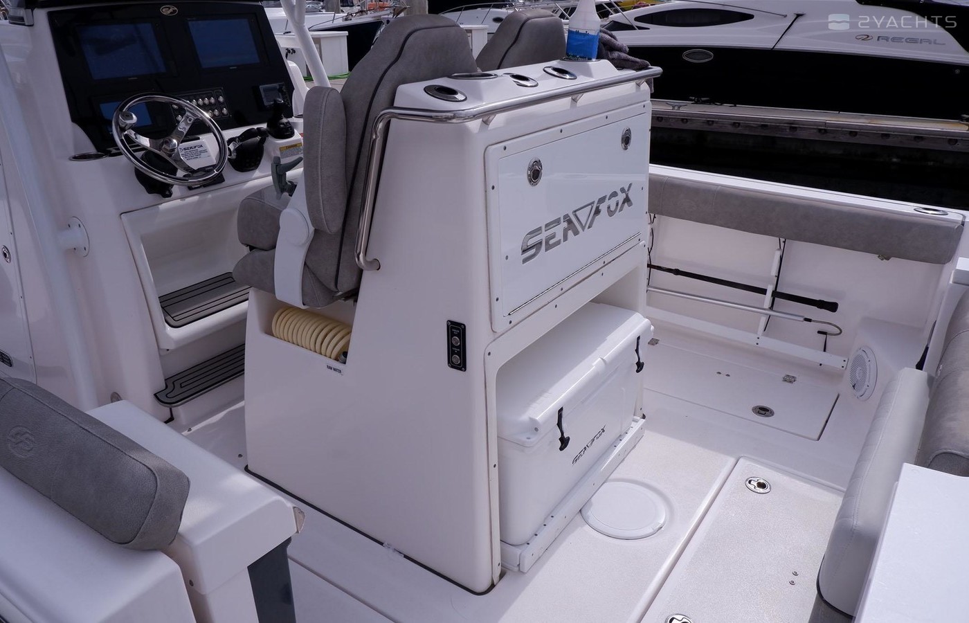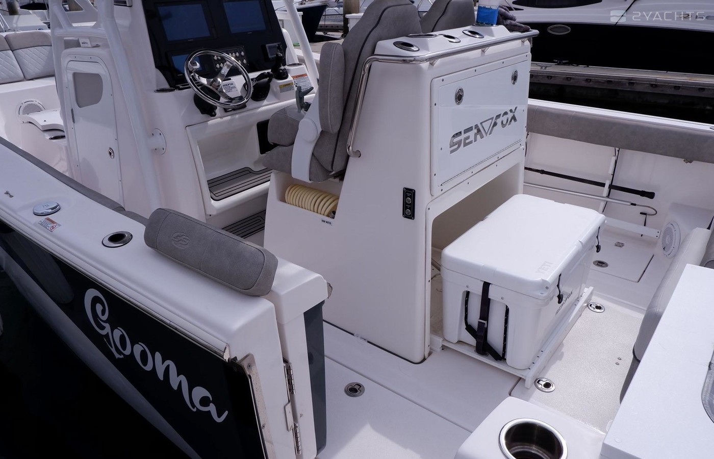 The 288 Commander is equipped with everything you need for some serious offshore fishing and all of those trips taken with the family. This is the first Sea Fox model to offer side door access in the cockpit to make entry into the vessel as easy as possible. The 288 Commander from Sea fox is a great boat with the design forward for family fun and comfort and a fantastic aft for hardcore fishing. This one has the windlass anchor, upgraded stereo system, dual Garmin electronics package, and more including
