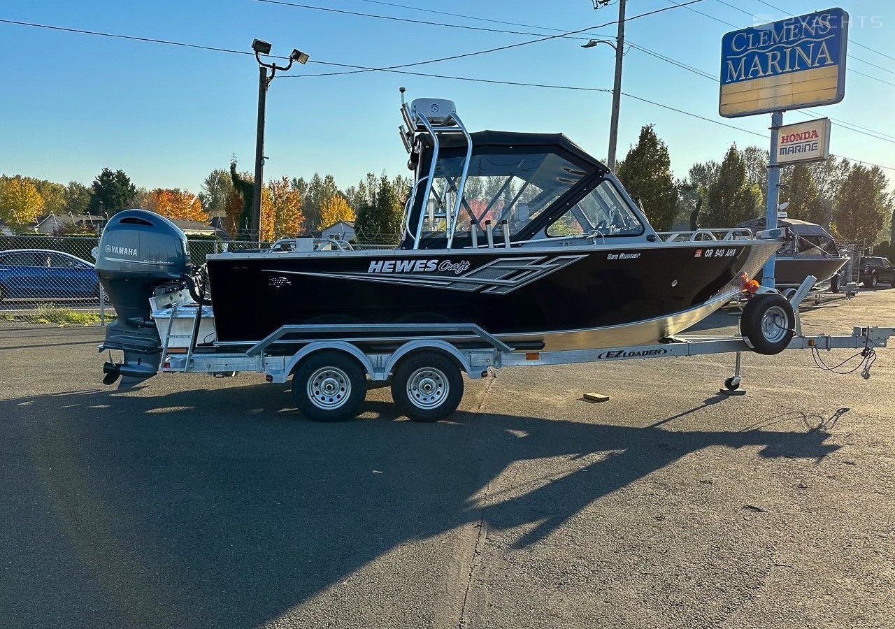 Nice 2021 Hewes Craft 190 Sea Runner ET - Yamaha F150XB with 101 hours with extended warranty remaining until 1/2026 - Yamaha T9.9XPHB with Reactor 40 Autopilot - Garmin Echomap 94sv Fish finder/Chart plotter - Garmin GPSmap 1042xsv with GT52 transducer - Garmin Fantom 18 Radar - Garmin VHF 215 AIS with 8' Antenna - Yamaha engine interface with Garmin units for digital data - Who Dat fishing tower - Lee Lock Anchor nest - Wash down pump - In floor fish box with Macerator pump - Transom livewell - Sea Star hydraulic steering - Full top, sides, backdrop and stern cover - Suspension seats at Helm with arm rests - Rear Sleeper seat boxes - Dual batteries with selector switch - Slide track adjustable rod holders at transom - Wired for Scotty Downriggers - EZ-Loader T/A galvanized trailer with chine load guides, disc brakes, LED lights, spare tire and swing tongue - Please contact our NE Portland location for more information.