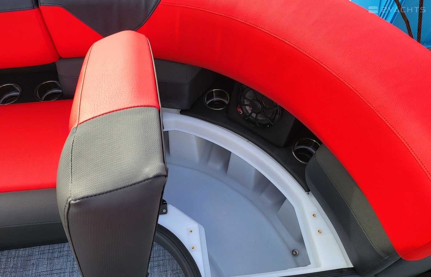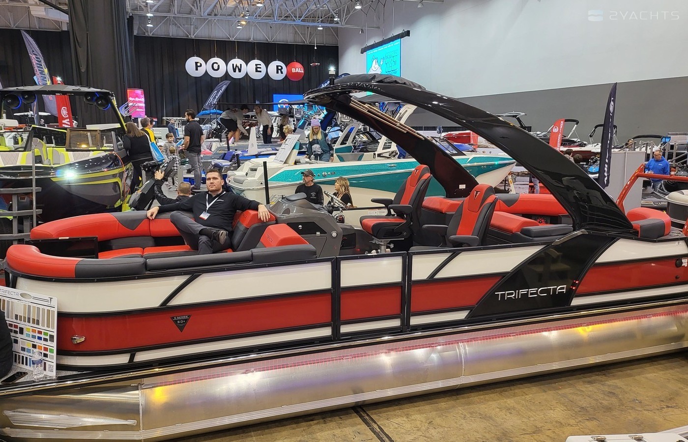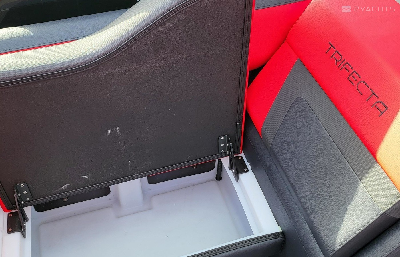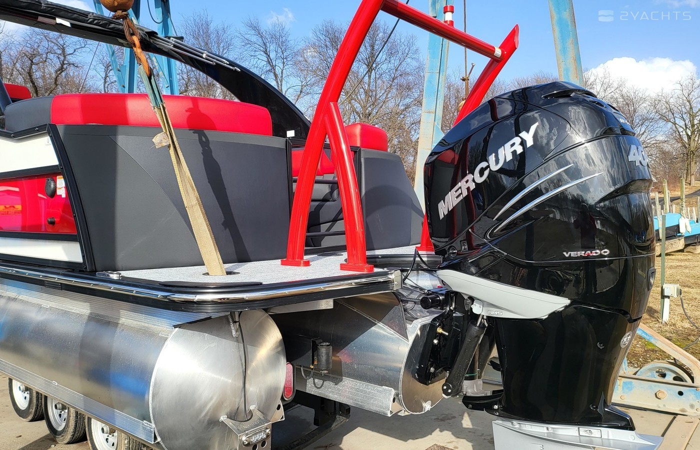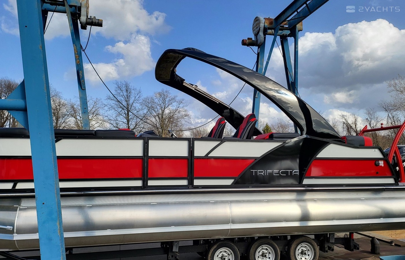 Trifecta the ultimate performance tritoon, and for a limited time with a 7 year warranty on boat and 400HP VERADO motor. Lifetime on the composite floor and tube welded structure. A spectacular red, black, and white color scheme gives this boat a show-stopping appearance that we love. This is our favorite color scheme for good reason. Nothing comes together like red, white, and black. The LED's all over the boat give it a simply awesome look at nighttime. You can choose from any color but obviously you should leave the red on at full power as often as possible. Comes with a brand new 400 HP Verado from Mercury, giving it ample power to throw you back in your seat. You will be able to feel that this is the same hull as the world's fastest production tritoon. The industry leading 3.0+ performance hull enables maximum efficiency, smooth ride through chop, and incredibly sharp cornering abilities. Driving these out on Lake Erie is our family's favorite pastime. Take a ride and see for yourself why so many people have made the switch to tritoons. Contact us today to schedule a visit &/or test drive.