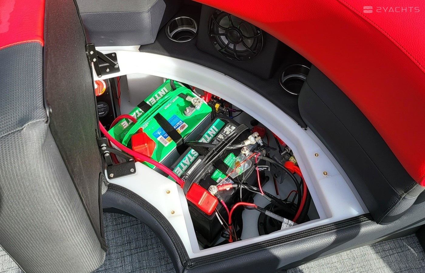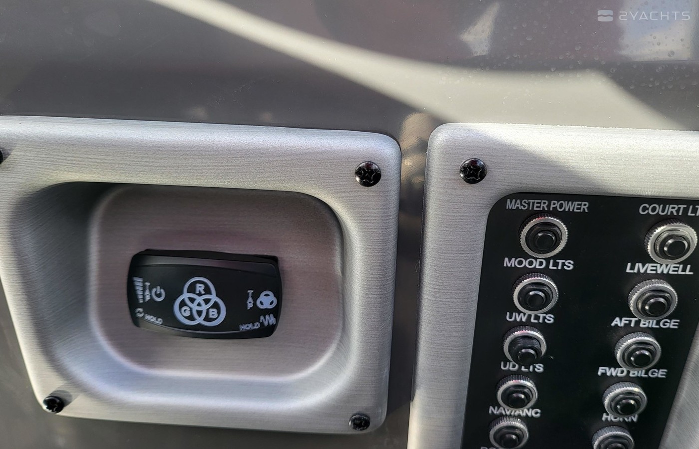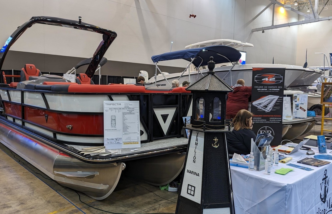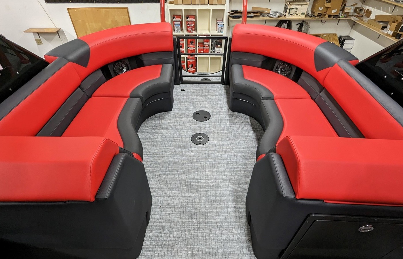 Trifecta the ultimate performance tritoon, and for a limited time with a 7 year warranty on boat and 400HP VERADO motor. Lifetime on the composite floor and tube welded structure. A spectacular red, black, and white color scheme gives this boat a show-stopping appearance that we love. This is our favorite color scheme for good reason. Nothing comes together like red, white, and black. The LED's all over the boat give it a simply awesome look at nighttime. You can choose from any color but obviously you should leave the red on at full power as often as possible. Comes with a brand new 400 HP Verado from Mercury, giving it ample power to throw you back in your seat. You will be able to feel that this is the same hull as the world's fastest production tritoon. The industry leading 3.0+ performance hull enables maximum efficiency, smooth ride through chop, and incredibly sharp cornering abilities. Driving these out on Lake Erie is our family's favorite pastime. Take a ride and see for yourself why so many people have made the switch to tritoons. Contact us today to schedule a visit &/or test drive.