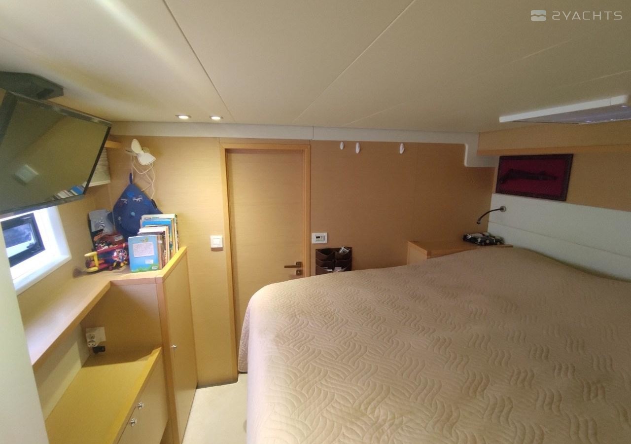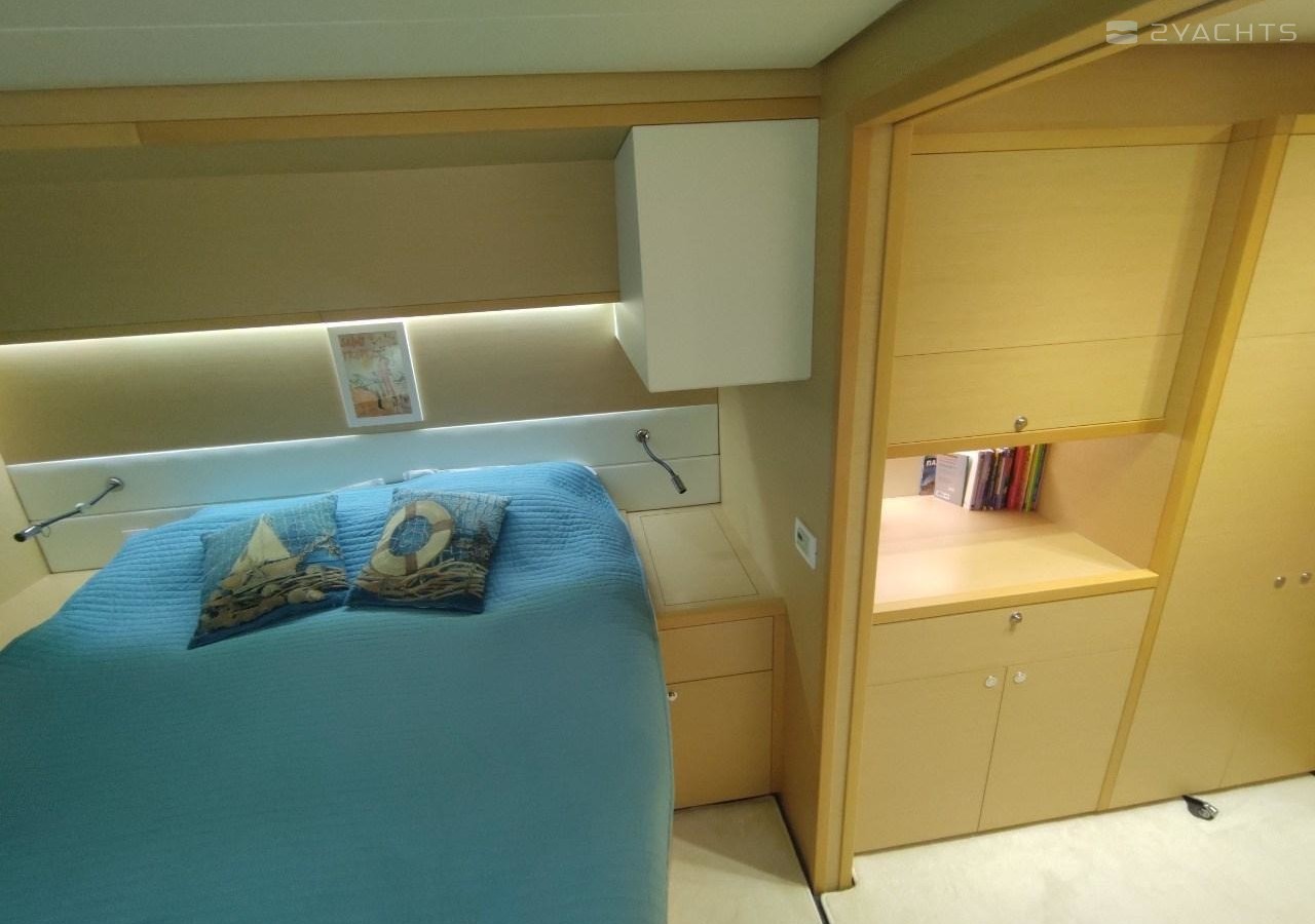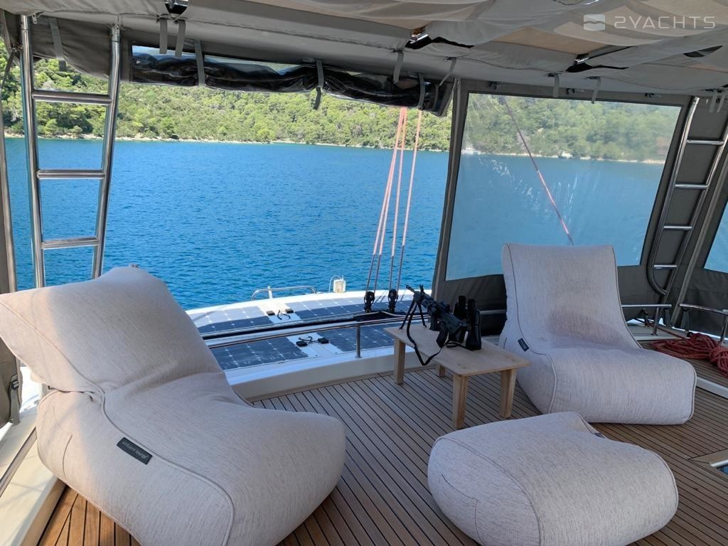 Deutsch Die Lagoon 52 F markiert eine ganz neue Ära im Design von Kreuzfahrtkatamaranen, ebenso wie ihr Vorgänger, der berühmte 500. Mit seinen rautenförmigen vertikalen Bugs, abgeschrägten Rümpfen, seinem wie schwebenden Deckshaus und dem hohen Rigg ist der Lagoon 52 kein gewöhnlicher Katamaran, aber seine Originalität geht viel weiter als nur sein "äußeres" Aussehen oder sogar seine Inneneinrichtung. Diese Lagune ist das Ergebnis langwieriger Diskussionen zwischen den Architekten von Van Peteghem-Lauriot Prévost (VPLP), der italienischen Agentur Nauta Design und der Designabteilung von Lagoon.