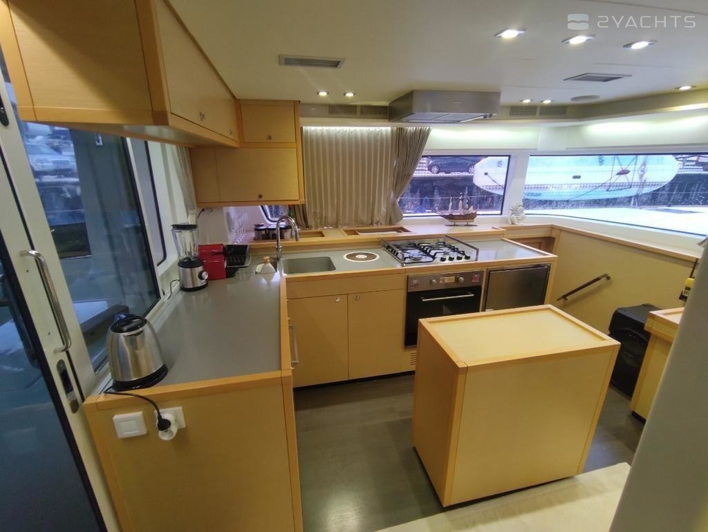 Kitchen and appliances Galley, Deck Refrigerator, Washer dryer.