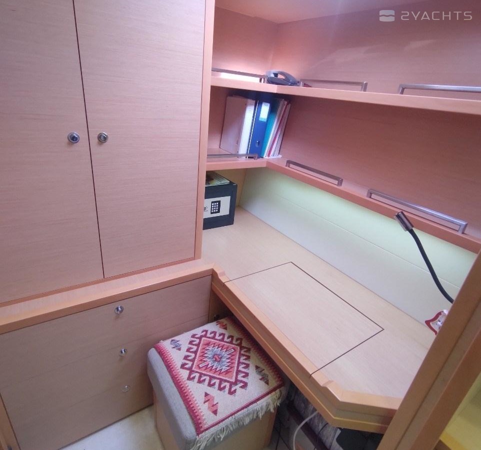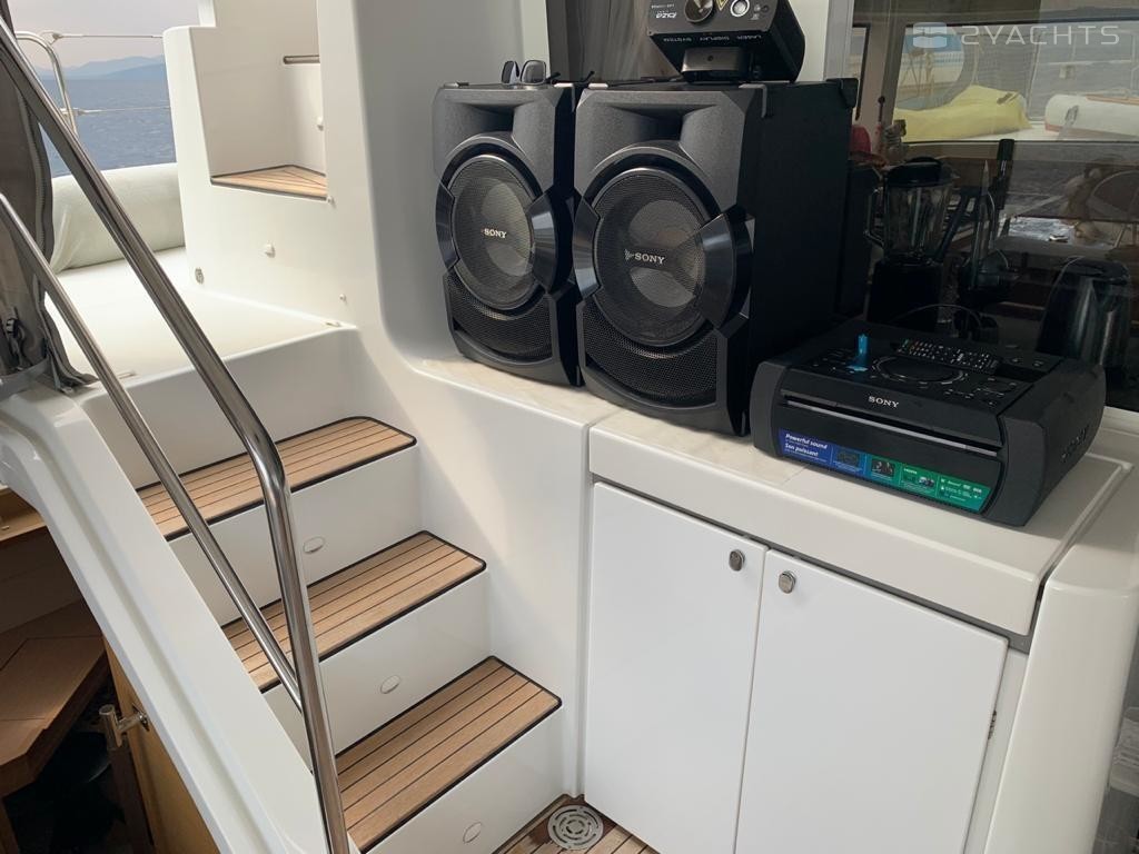 Staging and technical Engine Alarm, Bilge Alarm, Anchor, Water pressure pump, Life Raft, Batteries, Fire Extinguishing System, Courtesy Lights, Automatic Bilge Pump, Entry door, Shorepower connector, Water harbor connector system, Strand rigging, Gang Board, Winch, Stern Winches, Bow Winches.