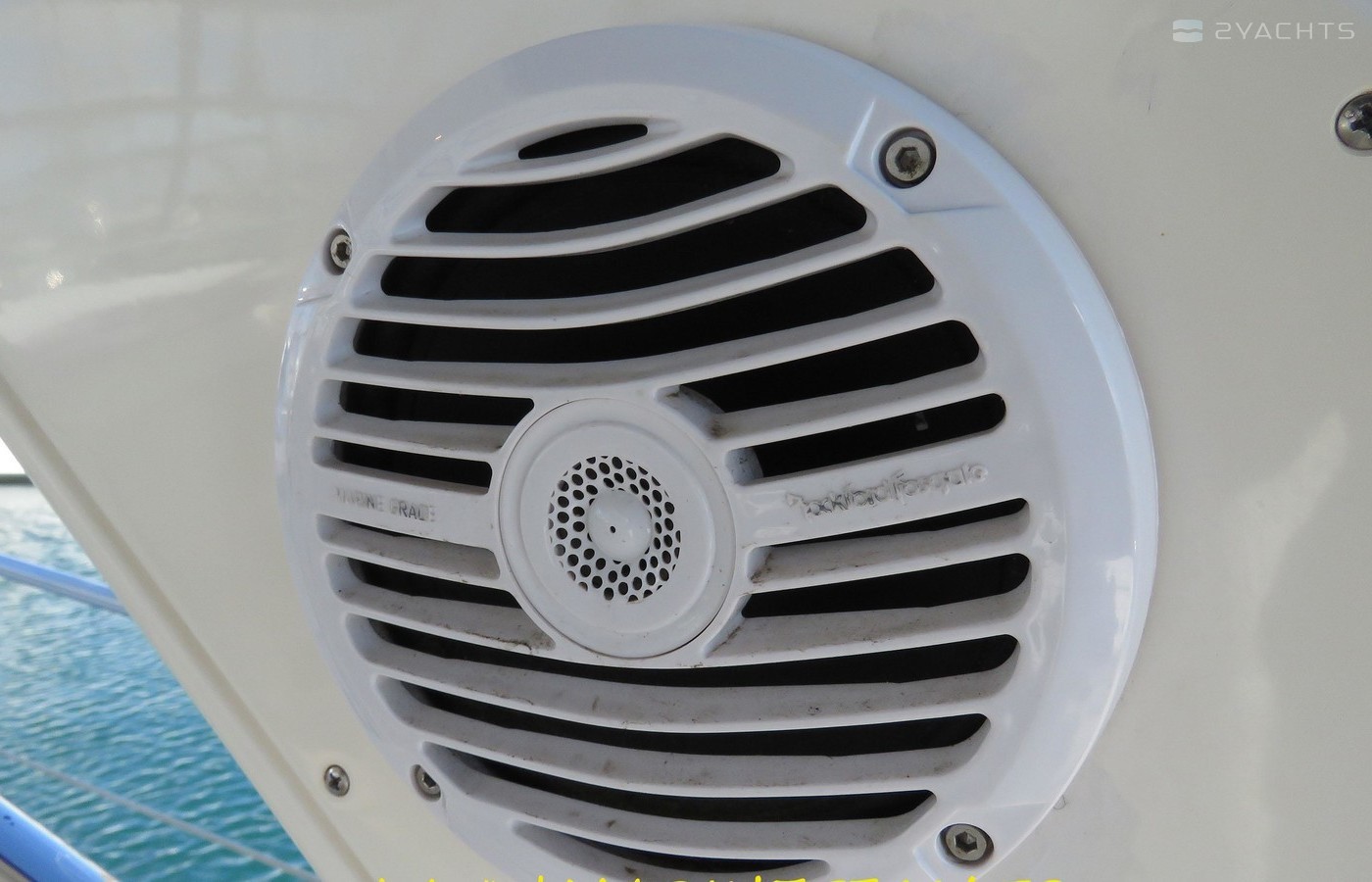 Electric aft garage. Teak cockpit and aft platform. SIDE POWER bow thruster. QUICK 1000W electric windlass. ROCNA VULKAN anchor 15 Kg + 50m chain 10mm. Bimini awning 2019. Aft closing canvas 2019. Forward sunpad with cover 2021. Aft sun pad. Wet bar with COOLMATIC 70L electric fridge, KARINEAR induction iron and sink. Hot/cold cockpit shower. Led lights.