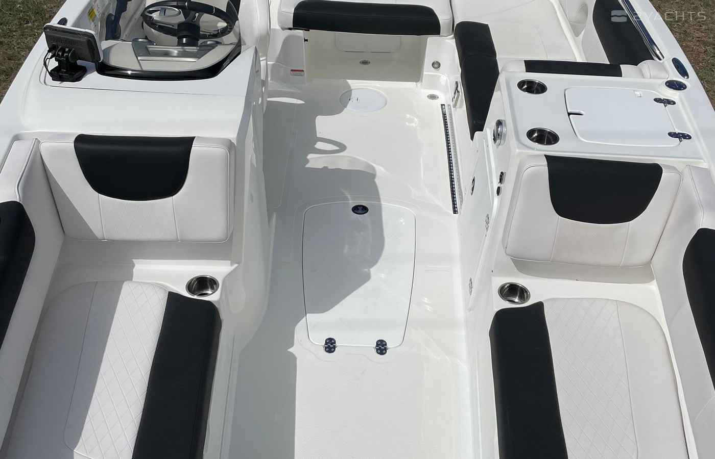 Aft L-lounge w/storage, tow rope holder & removable 36-qt. (34.07 L) cooler