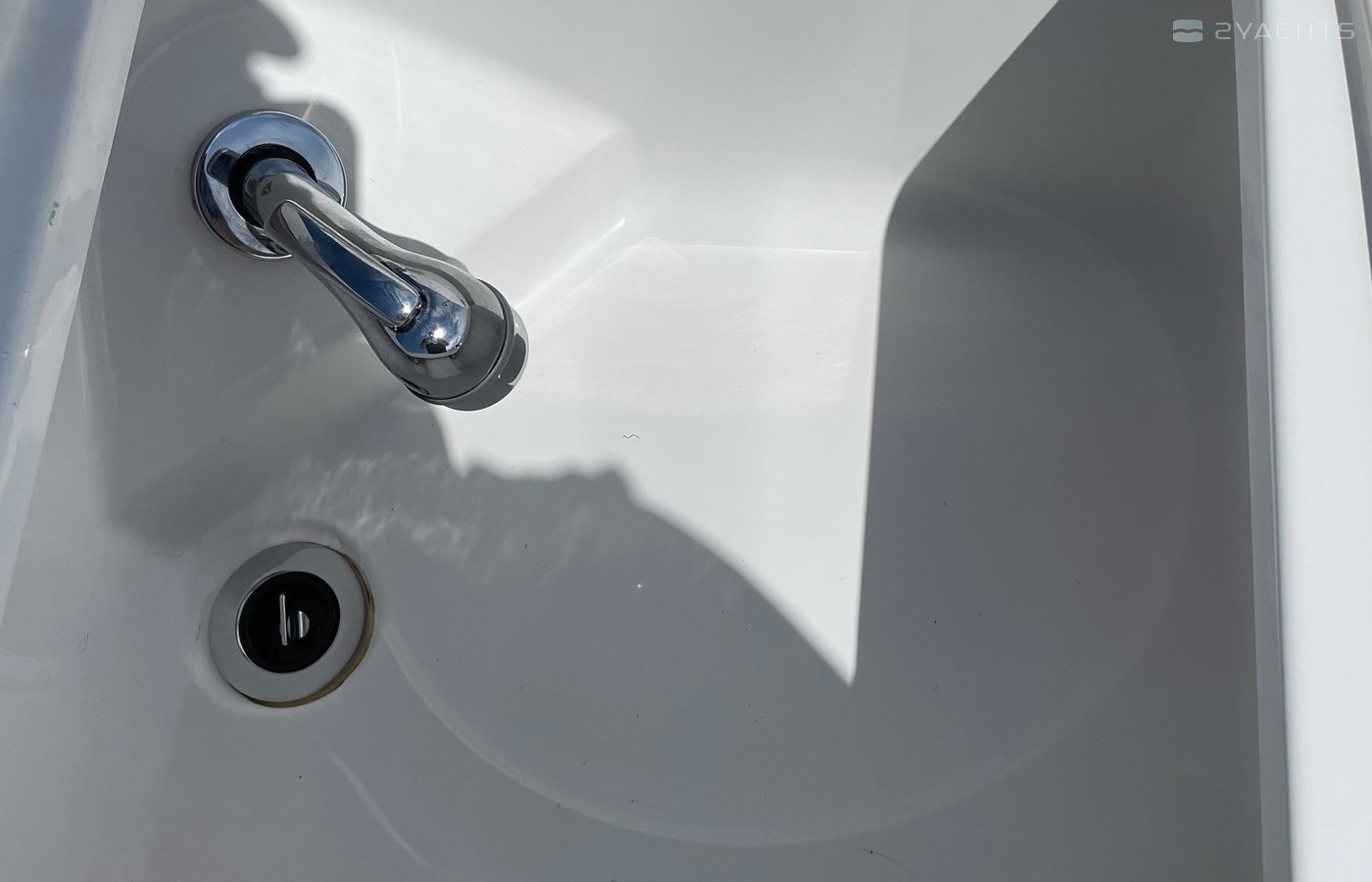 Finished gelcoat full-length fiberglass foam-filled stringer system bonded to the hull