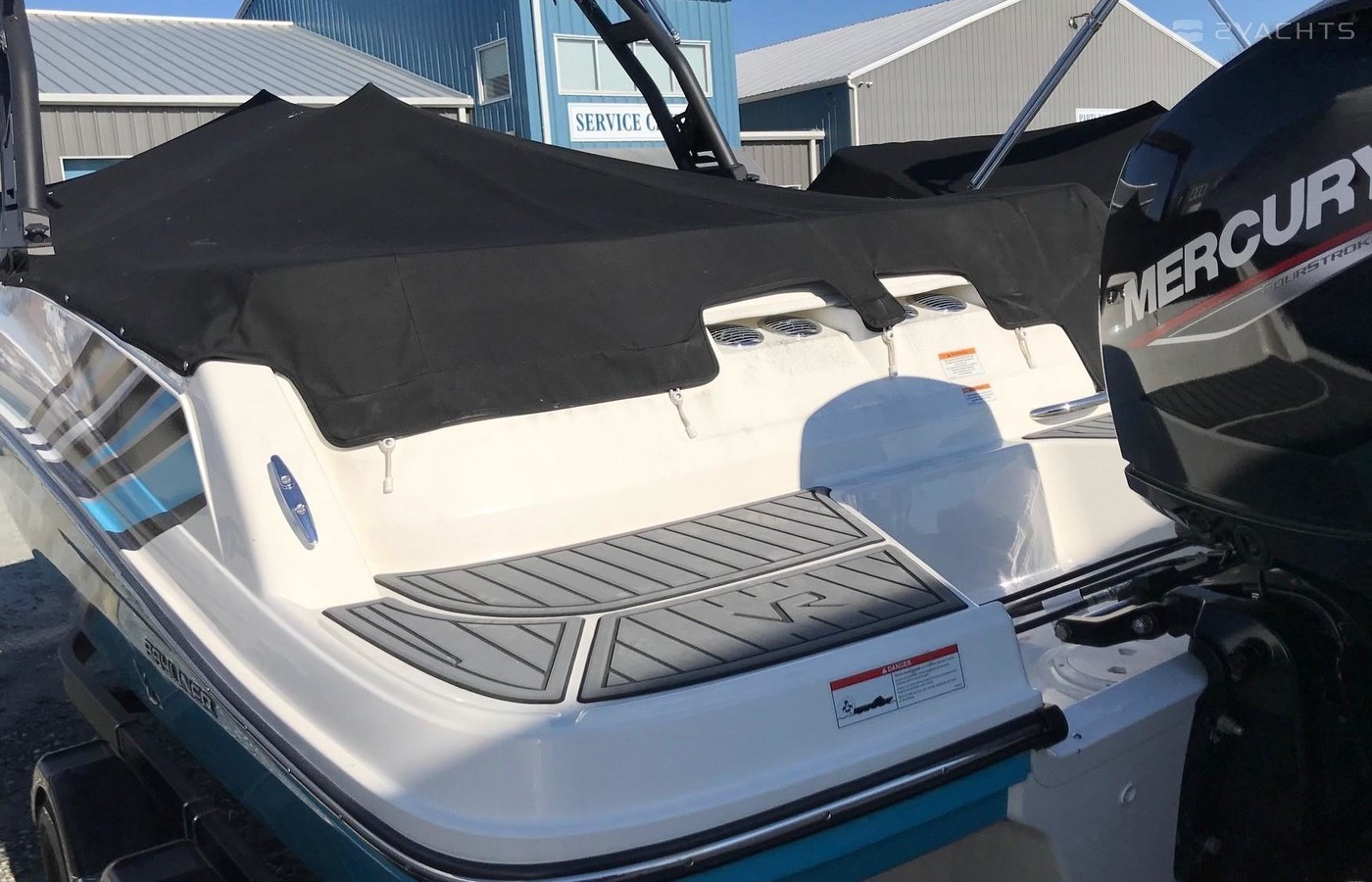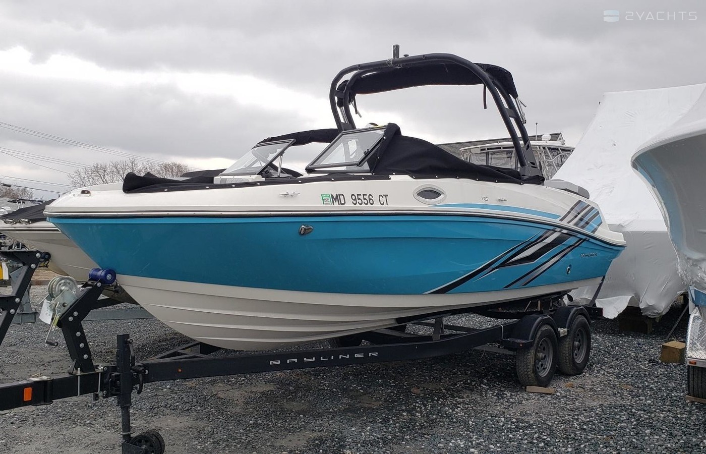 2022 Bayliner VR6 OB, 150 EFI 4S Mercury Outboard, Hours - 27, Karavan Trailer, Impulse Blue Hull with White Bottom, Boot Stripe, VR Series Graphite Lux Interior - Gray, VR Sport Package - Blue, Proarc Tower with Integrated Bimini Top, Windshield with Opening Center and Side Wings, Interior Lighting Package, Exterior Lighting Package, Cockpit Flooring - Gray Mat, Swim Platform - Gray Mat, Bow Well and Cockpit Cover, Rockford Fosgate Stereo, Simrad 9" Display GPS - Mercury, Dual Battery Switch, Helm Bucket Seat, Cockpit Table, Ski-Tow Pylon, Automatic Bilge Pump