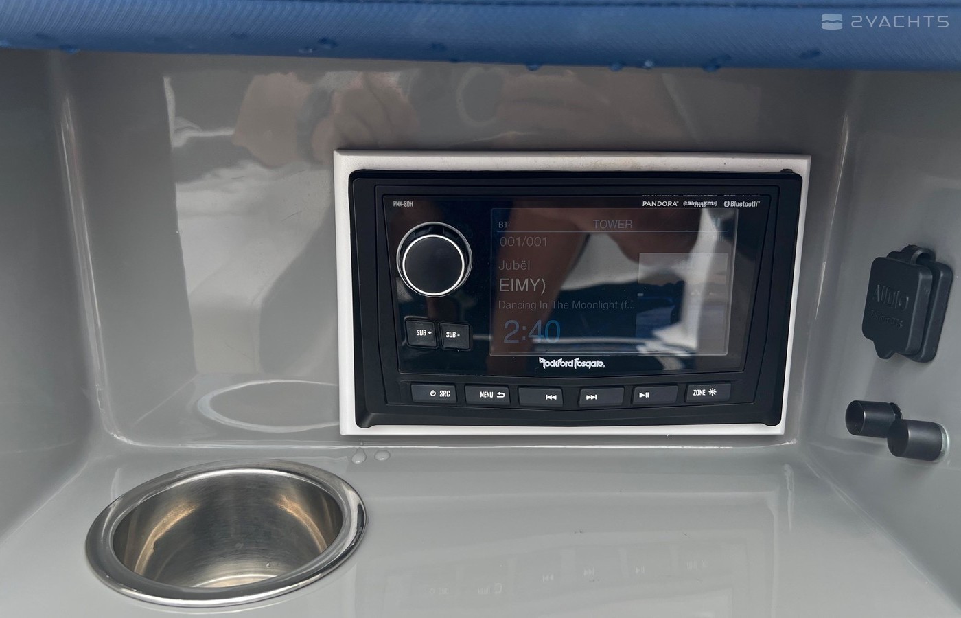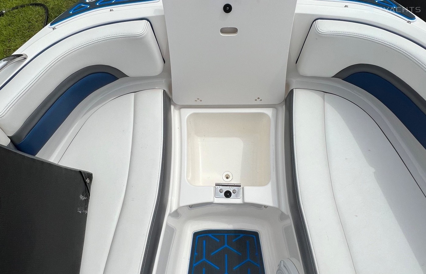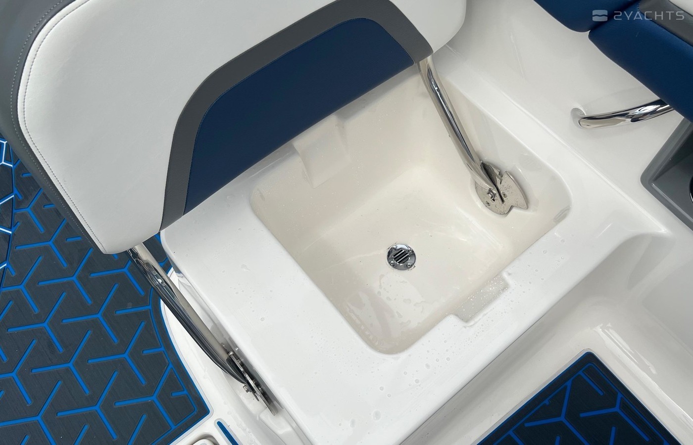 We have upgraded the flooring to seadek 9mm triple layer with triple color (white is the base color, blue is the middle and black is the top) with a custom one off hexagonal design. This was a $3k upgrade done in spring 2022. I have also upgraded the entire audio system to JL Audio that includes 2 sets of tower speakers, (2) 12's - one in the bow of the boat and one behind the captains chair, 3 sets of 6.6 coaxial, 2 AGM 3000amp XS Power batteries for long play at high levels, 2 JL amps (4ch and 6 ch) to run the entire stereo. I upgraded the receiver to a Rockford Fosgate double DIN full color that is bluetooth enabled so you can control everything from your phone or watch. The transom was fitted with a JL controller so that you can do whatever you need when you are in the water or on the back of the boat. Stereo was professionally installed by Custom Car Audio of Charleston and was $10,500. You will be heard!