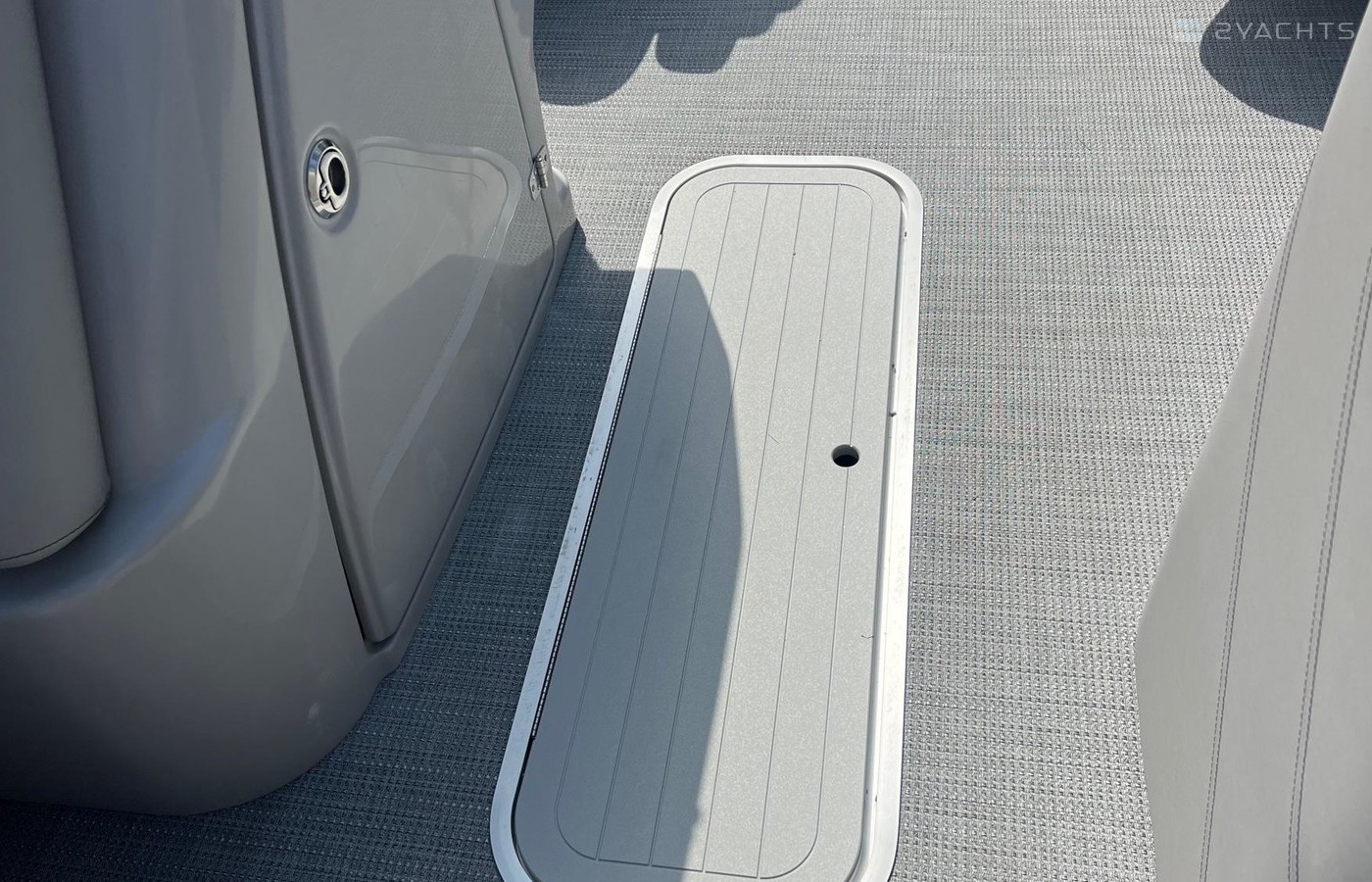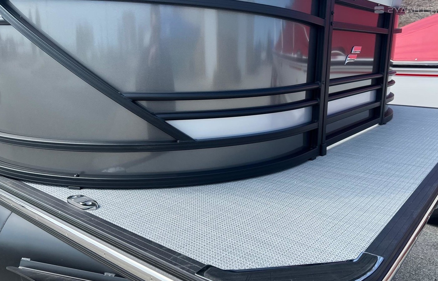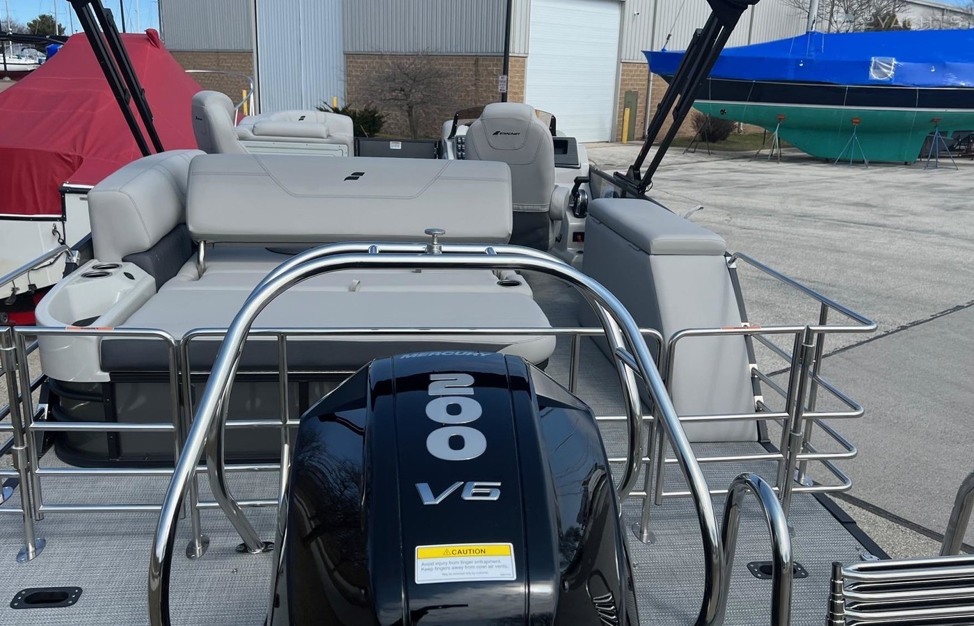 Carbon Panels, Black Rails, Grey Upholstery, Black Pontoons - Powered by Mercury 200 HP.