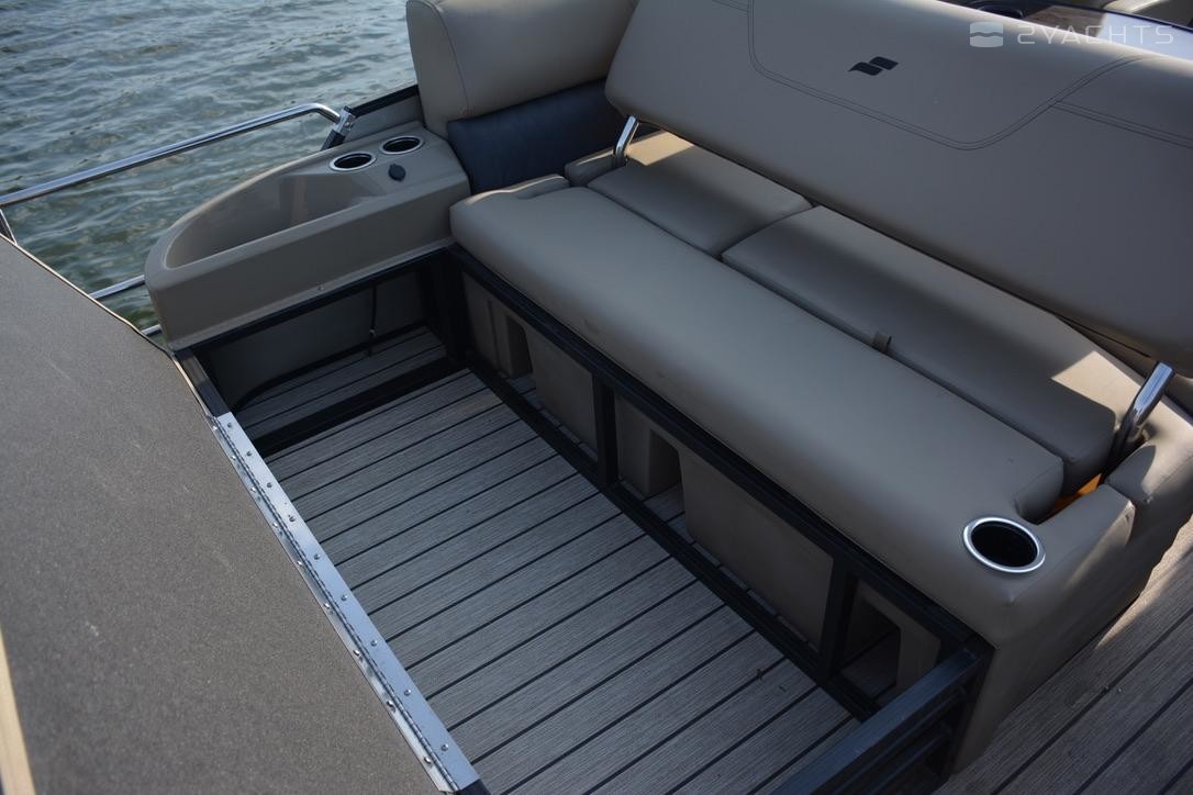 Powered by Mercury 200 Fourstroke outboard. Elegant Onyx panels with tan upholstery. Power Bimini Standard. Additional Features include: HMX PR25 Performance Package 22 x 25 PR25 w/ Storage 60gal Lifting Strakes Extended Deck Black Rails Windscreen Teak Weave Decking Hi Back Captain Seats Sea Star Hydraulic Steering 60 gal fuel tank JL Stereo System Mood Lights Cell Phone Holder Deluxe Ext Deck Ski Tow Performance Shield SS Extended Ladder Table