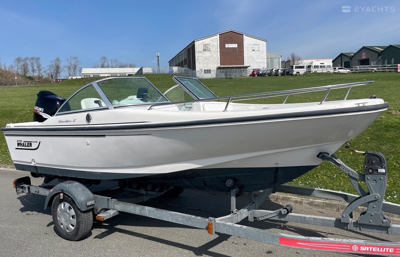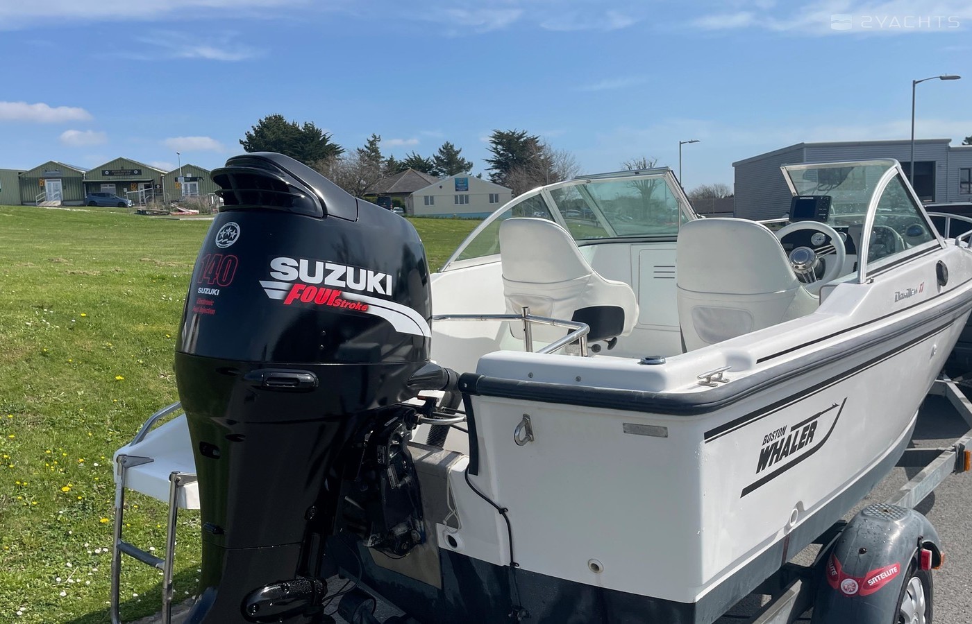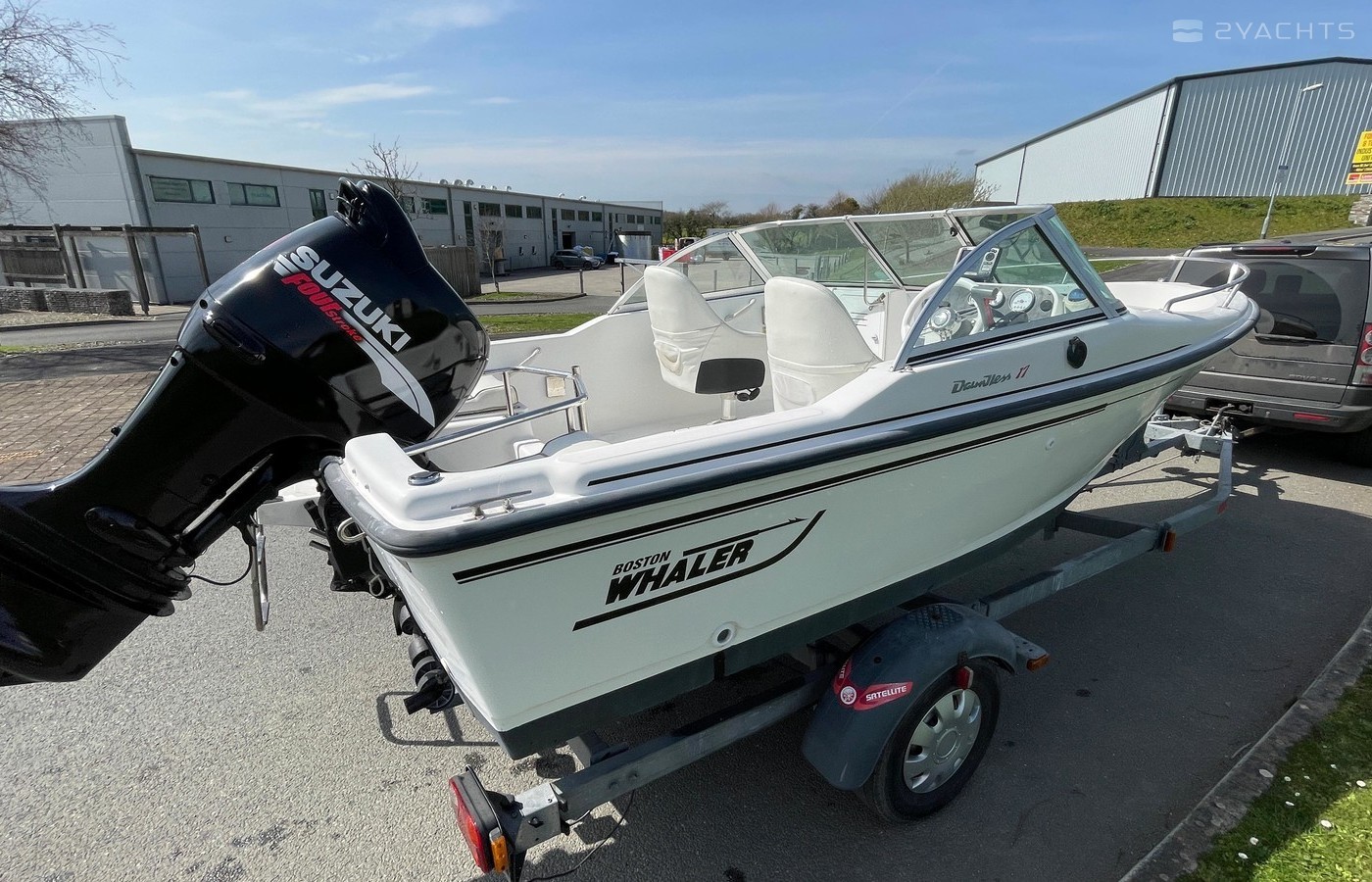 Nice condition 1998 Boston Whaler Dauntless 17 2004 Suzuki 140hp four stroke with only 250 hrs from new 2017 galvanised roller coaster trailer which is in excellent condition and has integral lights These boats have legendary status and are genuinely unsinkable. There are videos on the internet of them being sawn in half and still being driven. Lowrance Fishfinder. Icom hand held VHF The upholstery is in great condition for its age Stainless boarding ladder with small swim platform. National delivery can easily be arranged.