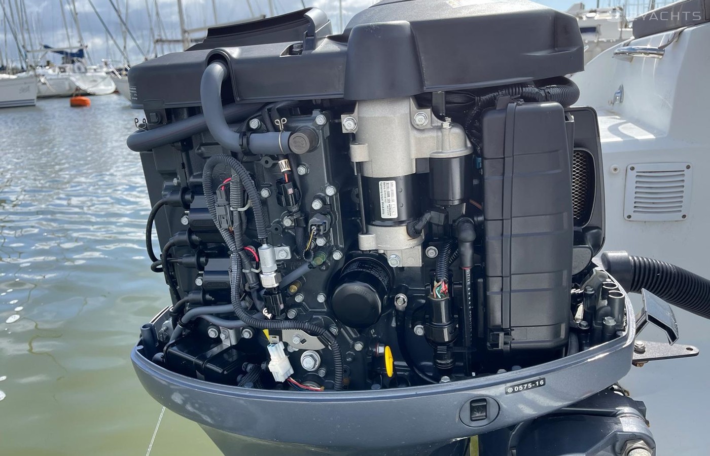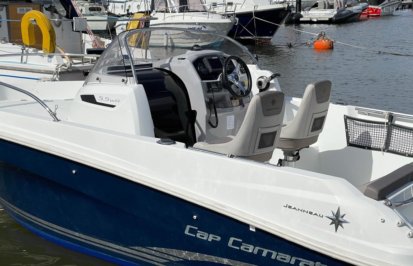 2017 Jeanneau Cap Camarat 5.5 WA powered by a Yamaha F100 outboard engine.
