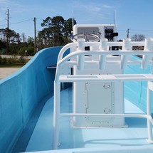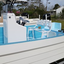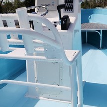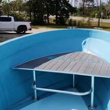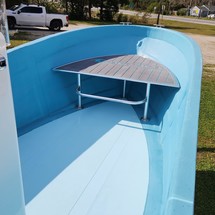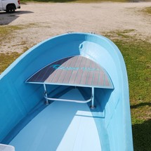 Custom aluminum bow casting platform/sun deck with folding footrest and faux teak flooring