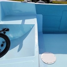 Transom seating with dual access hatches for easy accessibility to the bilge