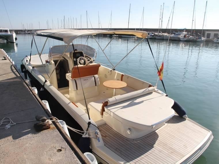 Disponibilidad inmediata - Stock en Barcelona El precio incluye la embarcación con su equipo estándar y opcional además del transporte y entrega en Barcelona. Diseño italiano para una excelente embarcación equipada con camarote y baño independiente. Dispone de solárium en proa y también en popa Incluye un muy extenso toldo bimini que nos protege del sol en toda la zona central del barco Contacte con nosotros para ampliar la información IVA no incluido
