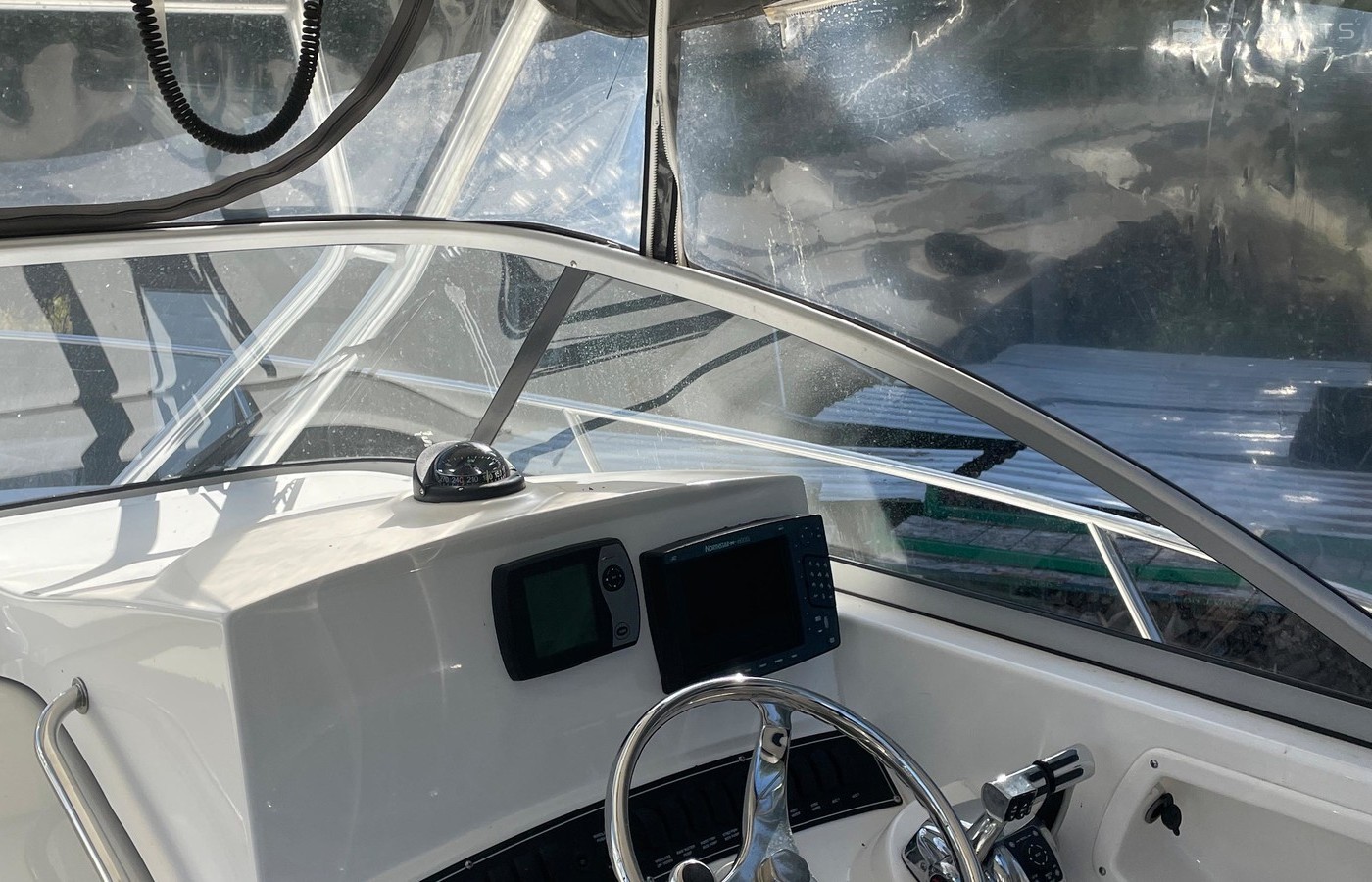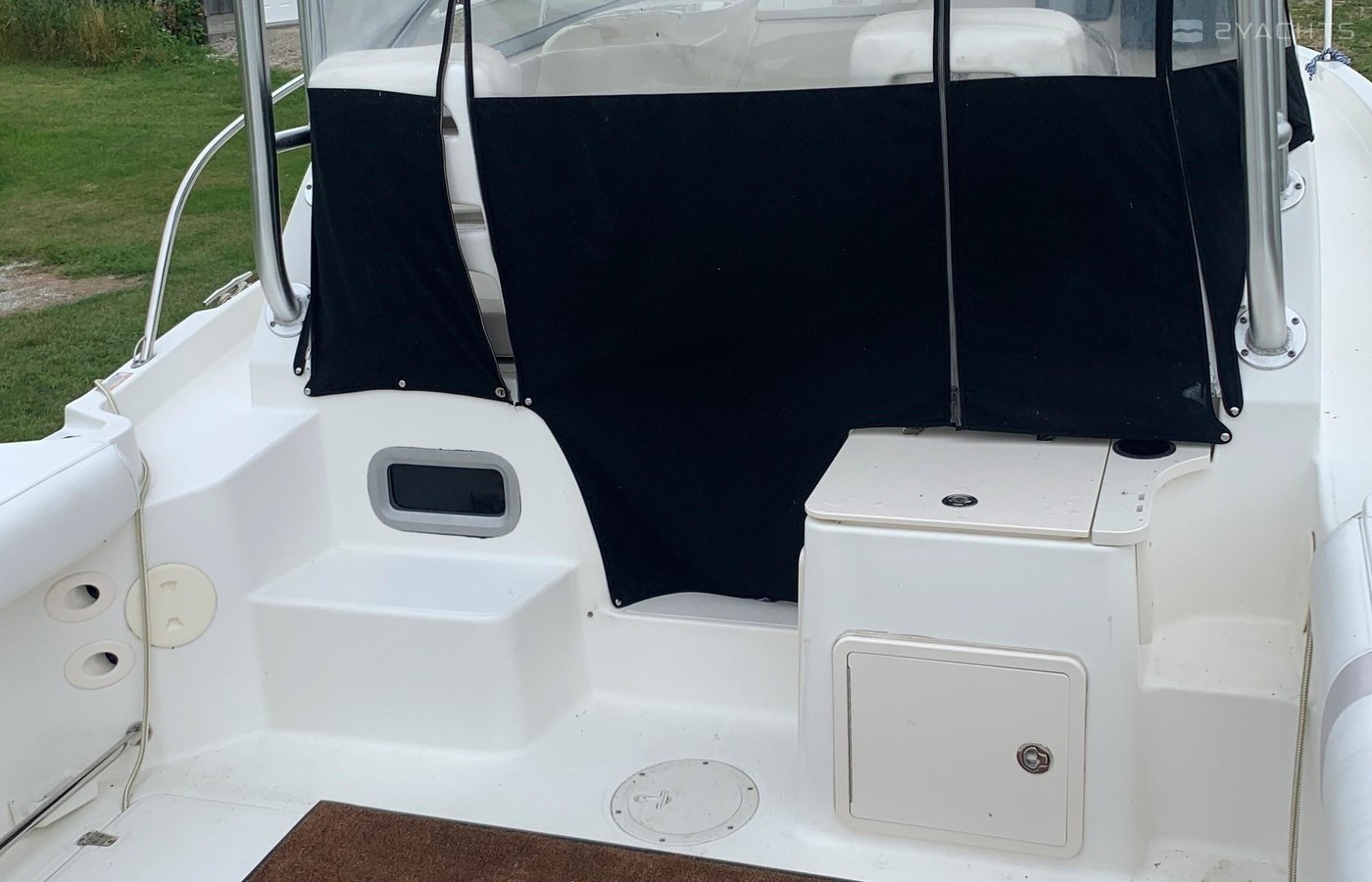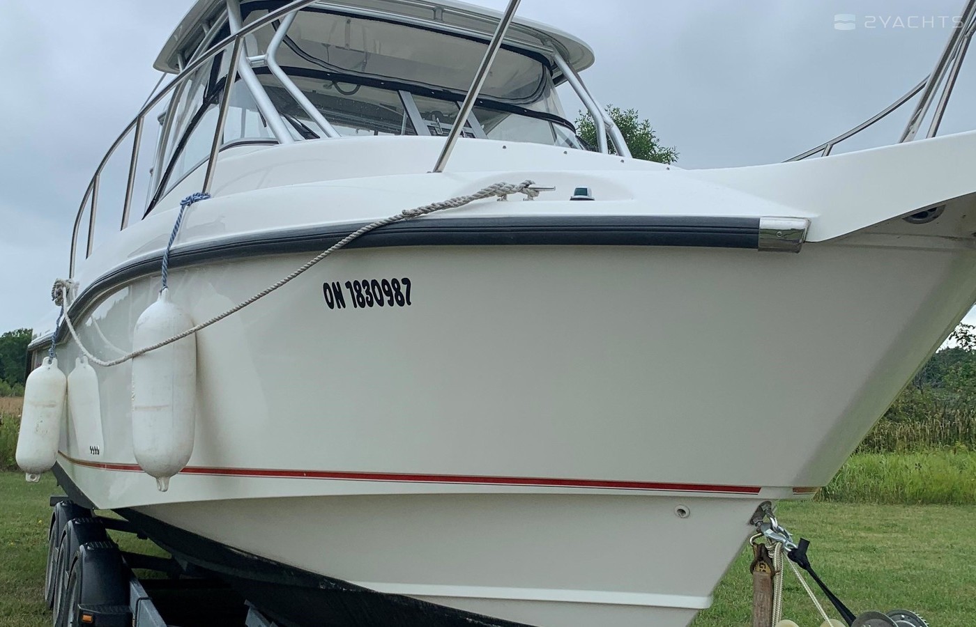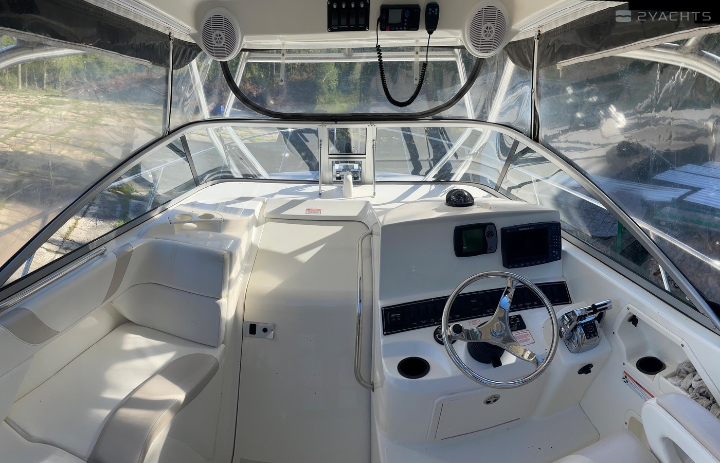 Fish through the day and relax through the night on a boat that is beautifully appointed for both. You?ll appreciate the combination of low maintenance, practicality and comfort of the 285 Conquest. In the oversized cockpit, there?s a folding stern seat, adjustable helm seat and portside lounge. For fishing, there?s a lighted livewell, rod holders and two insulated in-deck fishboxes with pump-outs. The roominess afforded by its wide beam provides plenty of elbow room for up to 14 people. And four can overnight comfortably in the forward V-berth / dinette and mid-cabin double berth.