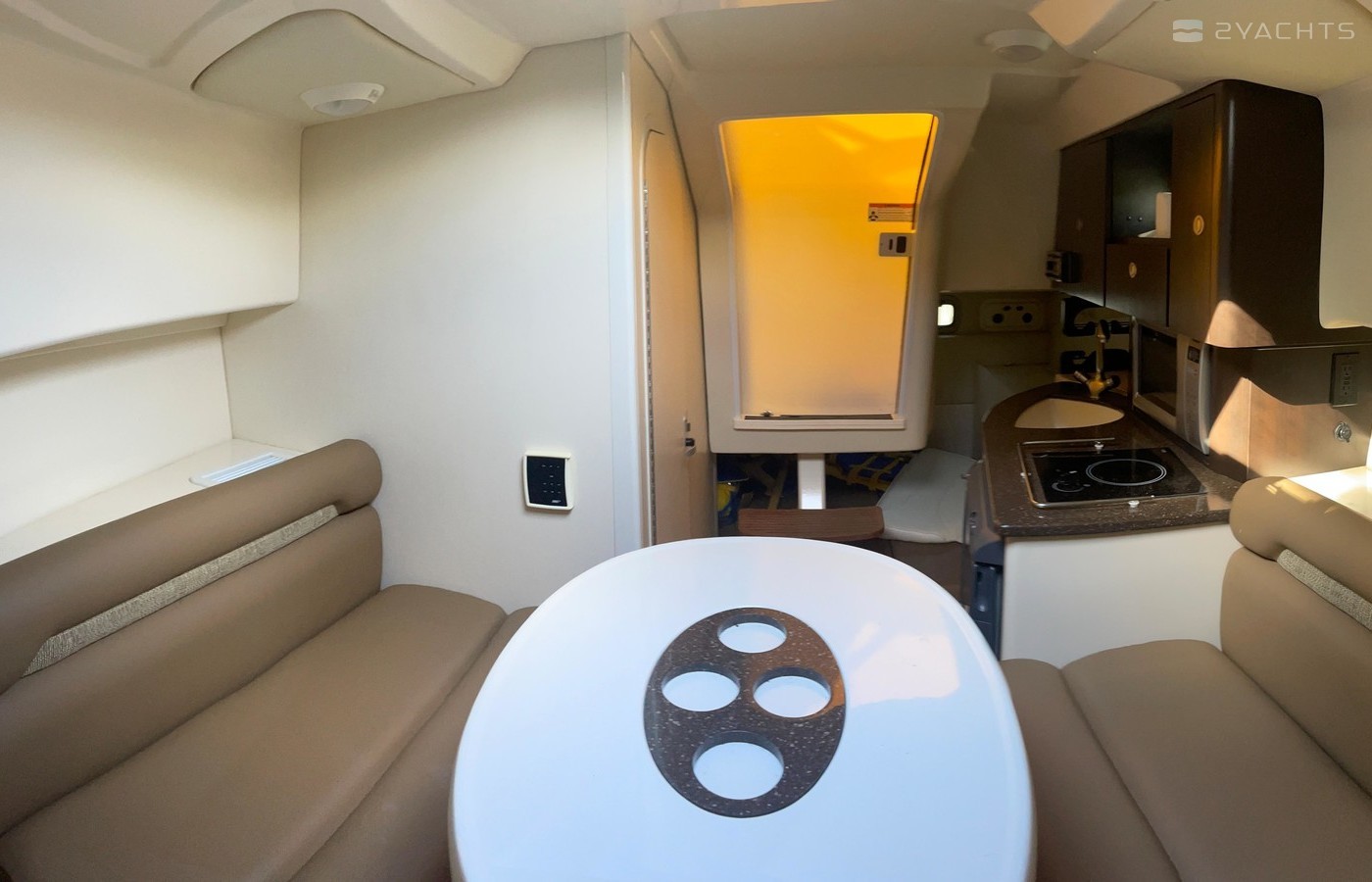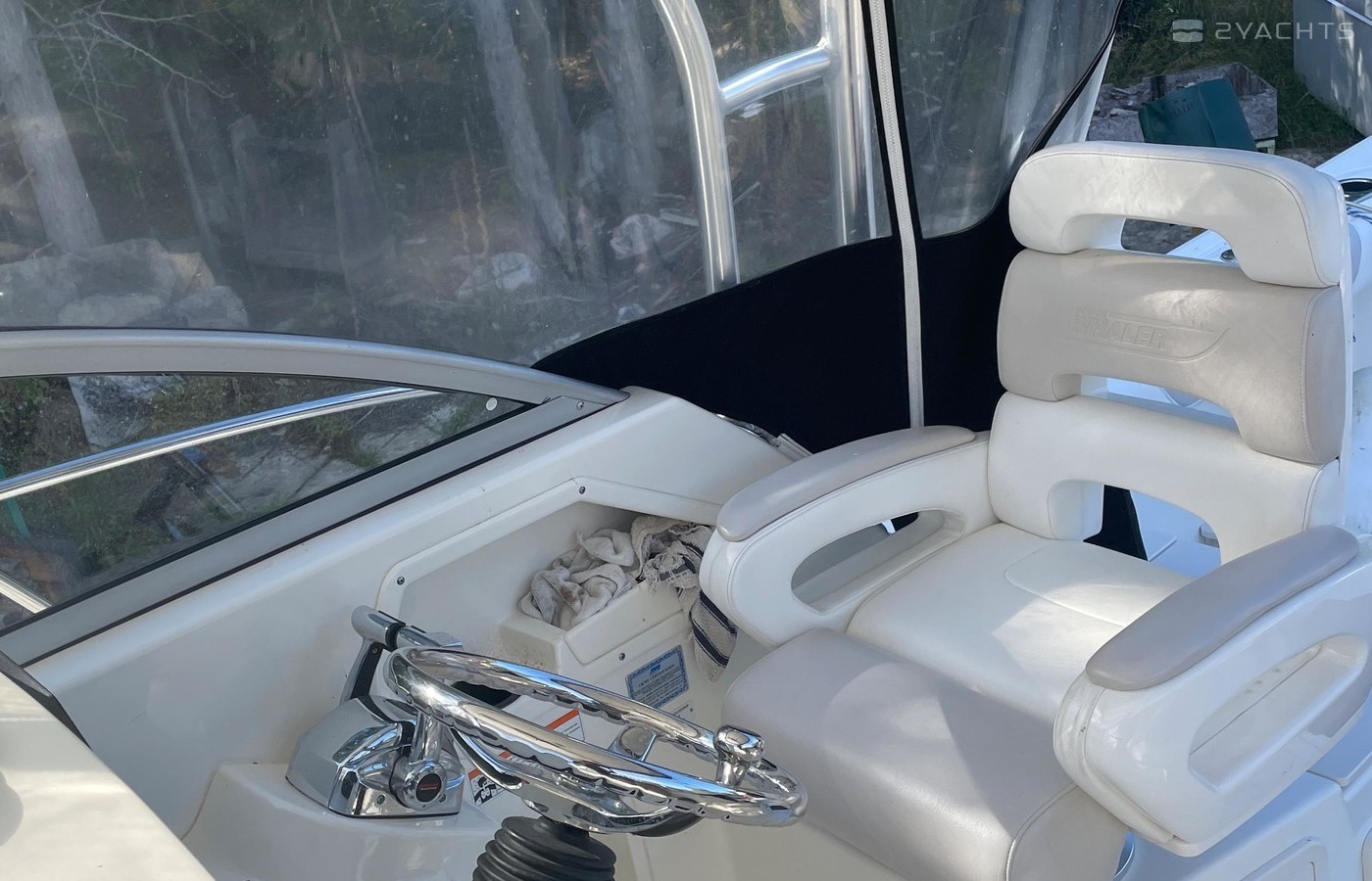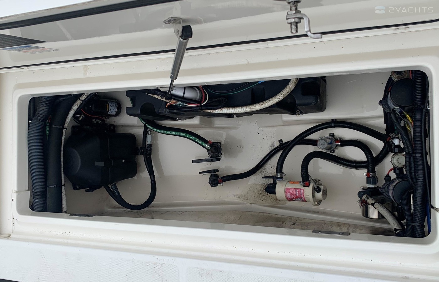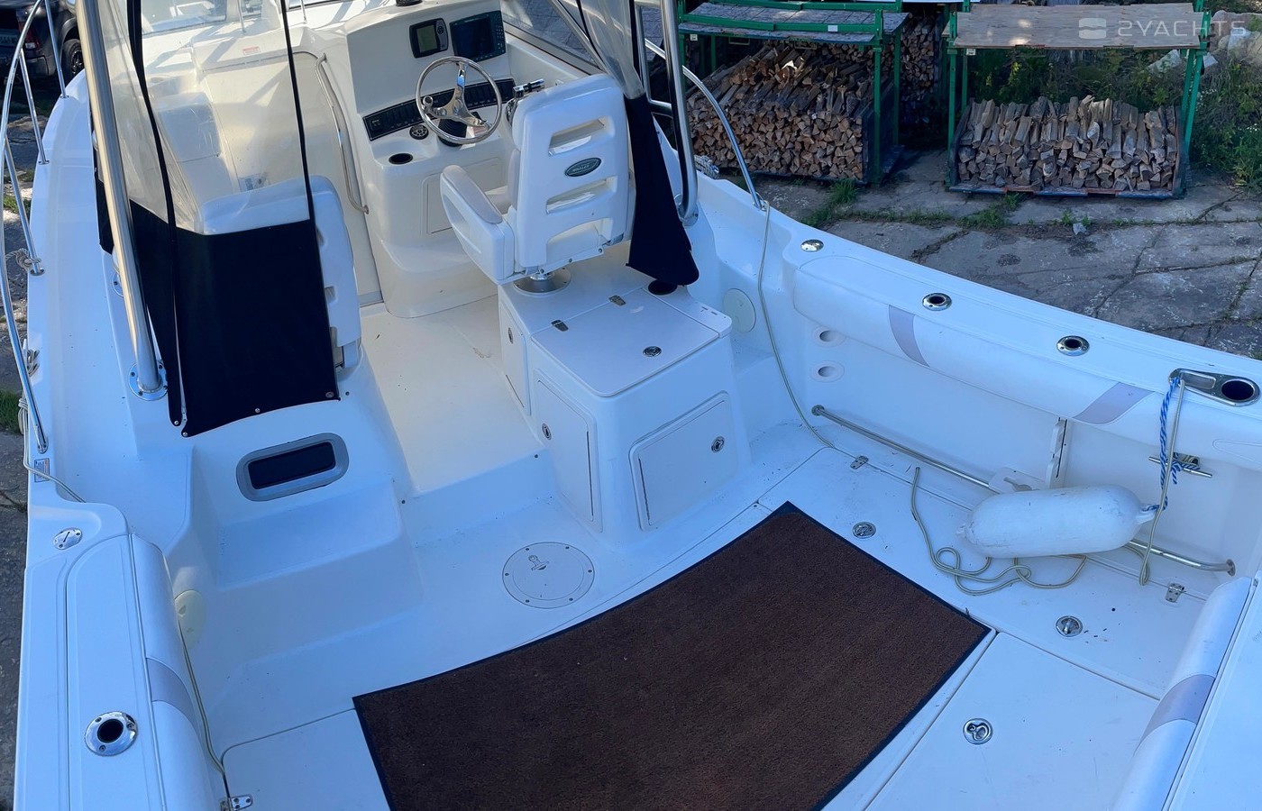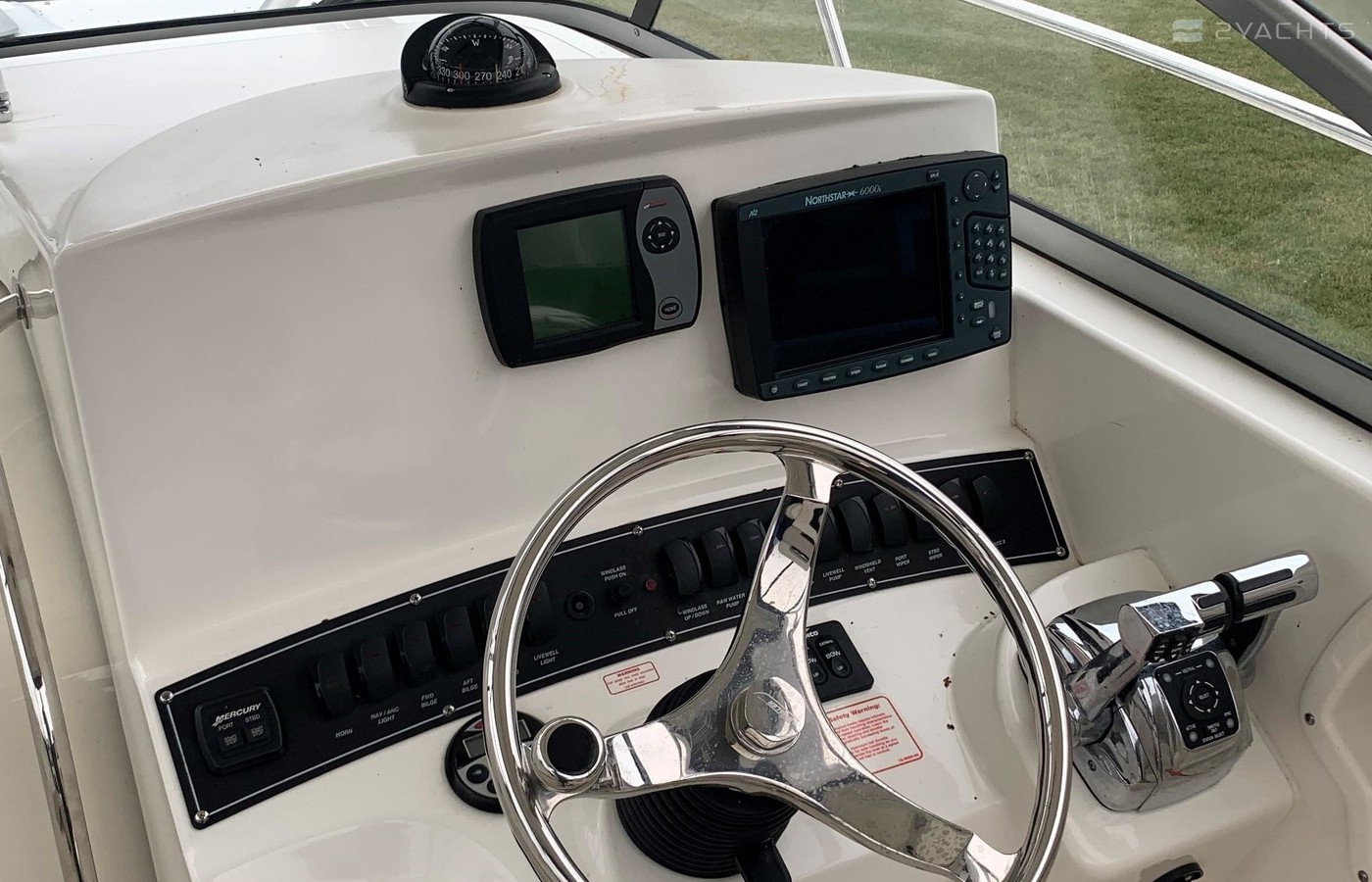 Fish through the day and relax through the night on a boat that is beautifully appointed for both. You?ll appreciate the combination of low maintenance, practicality and comfort of the 285 Conquest. In the oversized cockpit, there?s a folding stern seat, adjustable helm seat and portside lounge. For fishing, there?s a lighted livewell, rod holders and two insulated in-deck fishboxes with pump-outs. The roominess afforded by its wide beam provides plenty of elbow room for up to 14 people. And four can overnight comfortably in the forward V-berth / dinette and mid-cabin double berth.