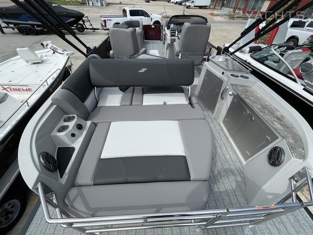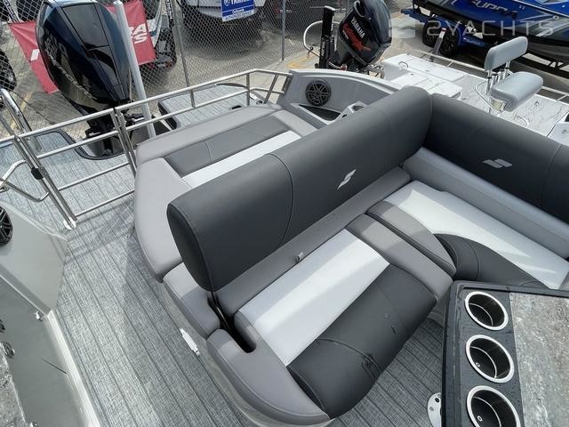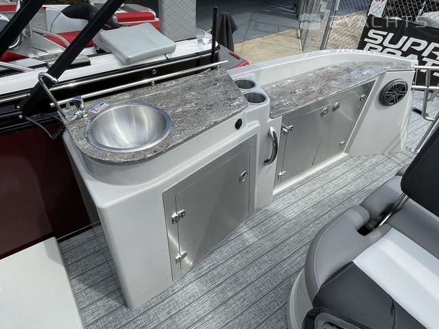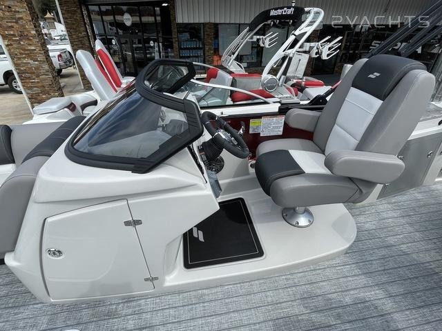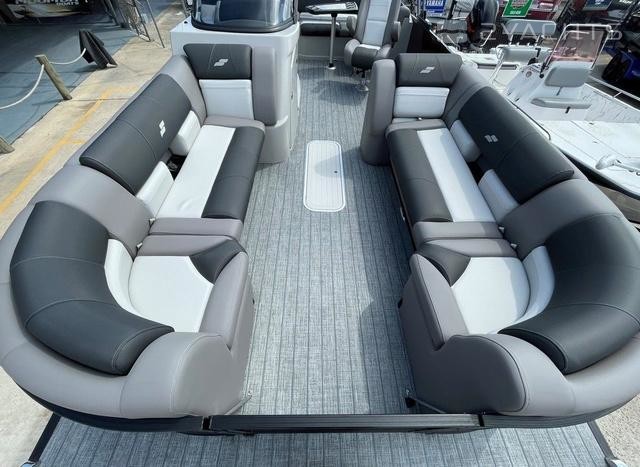 2022 Starcraft Marine MX 25 Q DH, 2022 Starcraft Marine MX 25 Q DHCRUISE INTO STYLEThe Mx Series Takes Contemporary Pontoon Boat Styling To The Next Level, With Black Anodized Rails And 12 Amazing Layouts, Including Dual Rear Loungers And Bar Units. Optional Hmx Performance Strakes Pump Up The Excitement, And Two Great Packages Add The Finishing Touches.With its bold styling for 2021, Starcraft MX takes luxury and performance to all-new levels. A variety of floorplans with Starcraft’s exclusive Soft Touch upholstery let you choose the seating layout that best suits your needs, while enjoying the elevated consoles with standard individual windscreens or an available walk-through windshield. A flush-mount Simrad touchscreen display and new V3 gauges grace the elegant helm, while a roomy extended deck, bow docking lights, fold-up cleats, and handsome 10' Bimini top all come standard.Features may include:ELECTRICALDocking LightsLighted CupholdersConcealed Mood LightsDECK AMENITIESWide Handle 4-StepStinless Steel LadderRotocast Furniture Bases w/ Integrated DrainsHigh Back Helm Seat w/ SliderBlack Anodized Rail, Deck Trim & Top FrameStainless Steel Rub RailExtended Rear DeckRaised Helm PlatformFUEL/STEERINGBuilt-in Fuel TankExtreme Tilt SteeringGussi Italia Verona Steering WheelMISCELLANEOUSChanging RoomRemovable CupholdersWindscreenFour Deck CleatsHULL CONSTRUCTION25” Diameter Aluminum Pontoon TubesMarine Grade ¾” Plywood deckingAll Welded Aluminum TransomMarine Grade UV Stable CarpetLifetime Limited Floor/Deck/Tubes/Transom WarrantyFull Heavy Hat UnderstructureExtended Rear DeckCanvasColor Coordinated Bimini Top w/ Storage Boot and Trailering LegsDASH/CONSOLEFull Fiberglass ConsoleWindscreenTachometerGPS Speedometer with PigtailVoltmeterTrim GaugeFuel GaugeJL Audio MM50 Stereo with BluetoothSimrad G07 In-dash DisplayFLOOR/CARPETMarine-grade UV Stable Carpet3/4" Plywood Deck with Lifetime Warranty